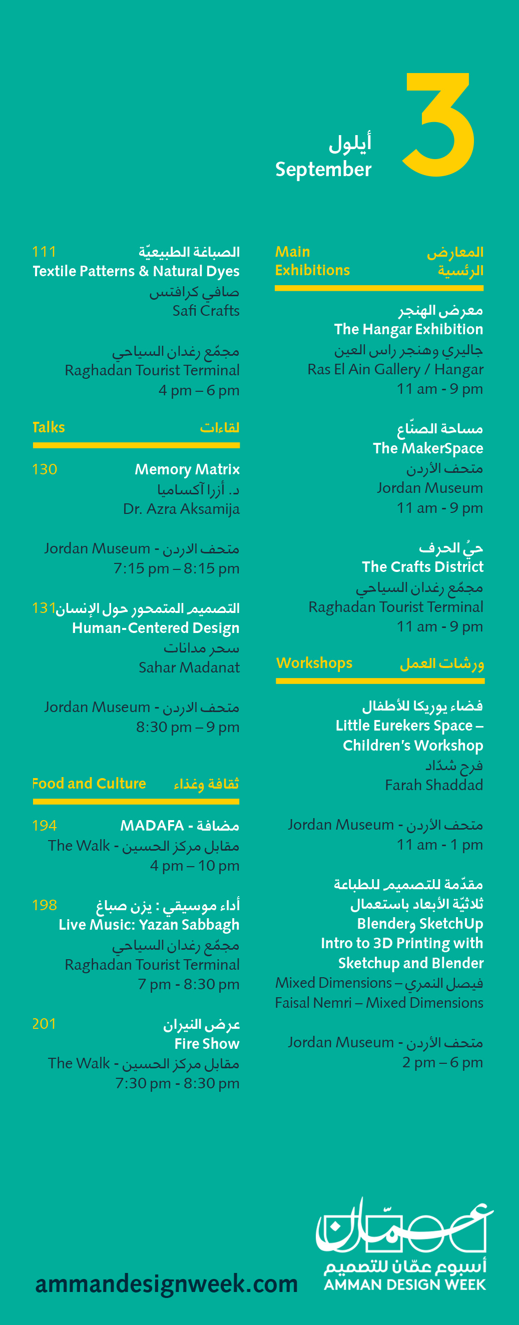 ٣ أيلول- ص11 – 1 م و 4 م – 9 م