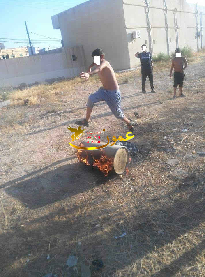 وانا اشهد انهم ارهابيون متخفين ومسوين حالهم اطفال . لاحظوا برميل القمامة الذي يقفزون فوقه انا شاكك فيه .
