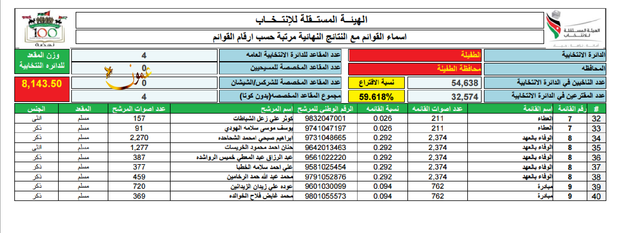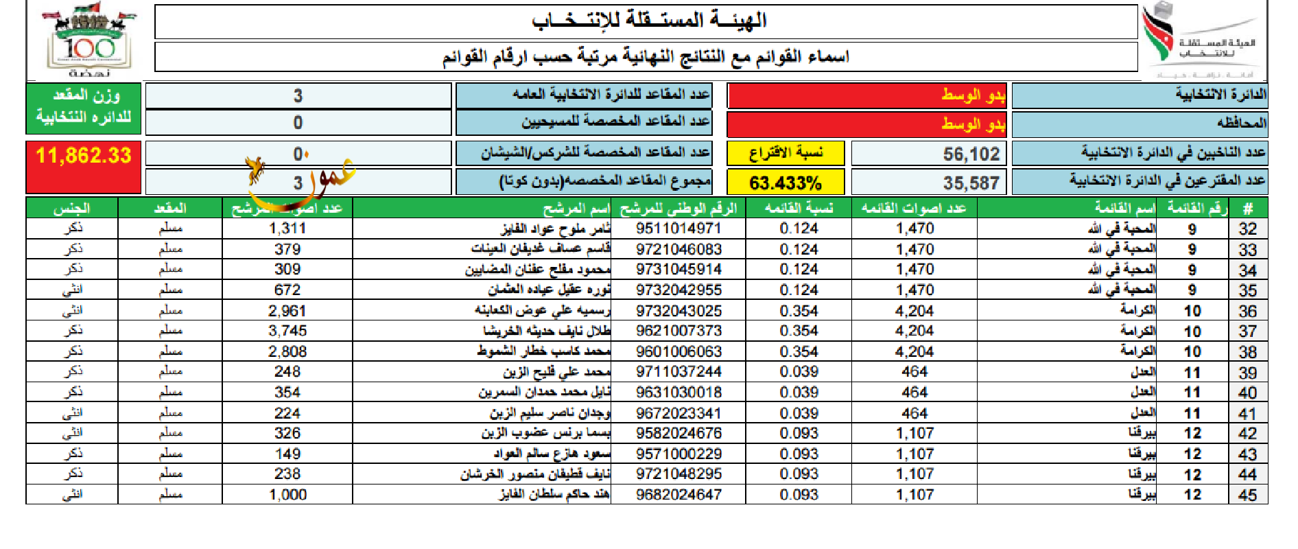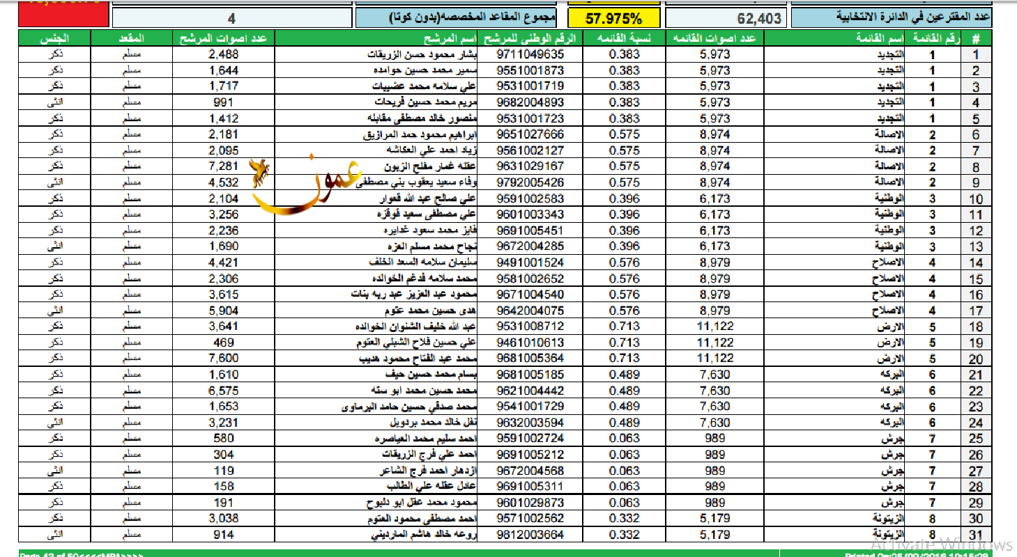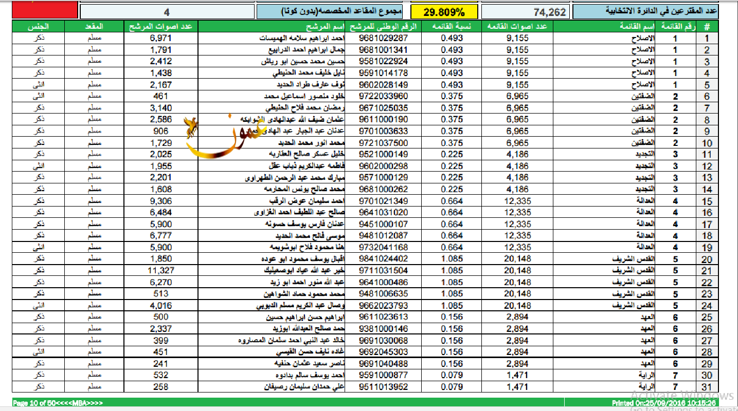 نتائج الانتخابات النيابية للناجحين ومن لم يحالفهم الحظ25-09-2016 04:18 PM