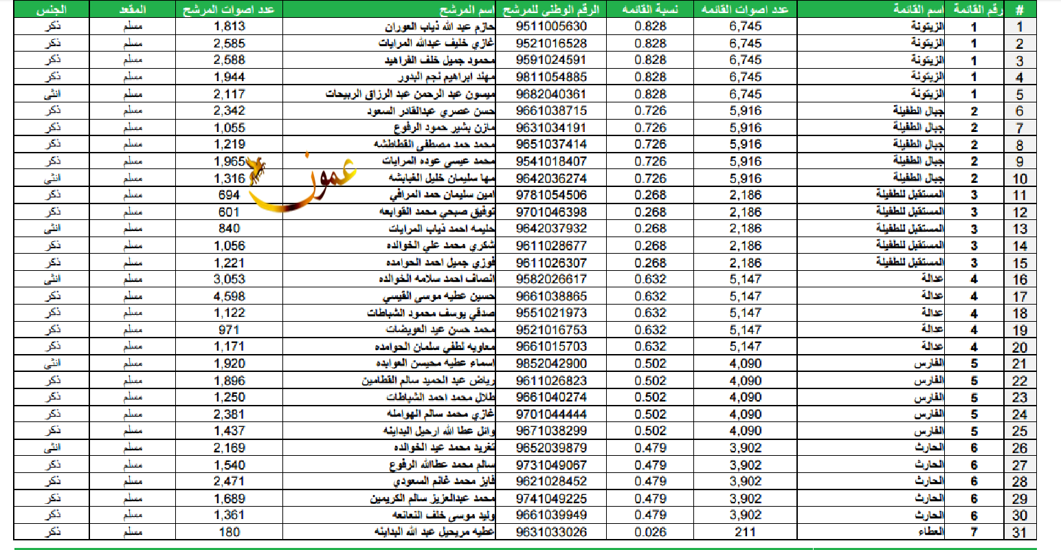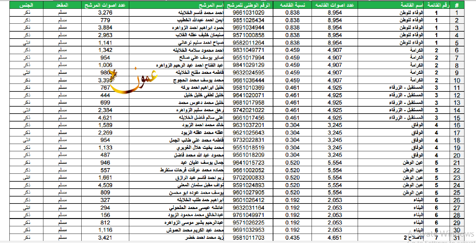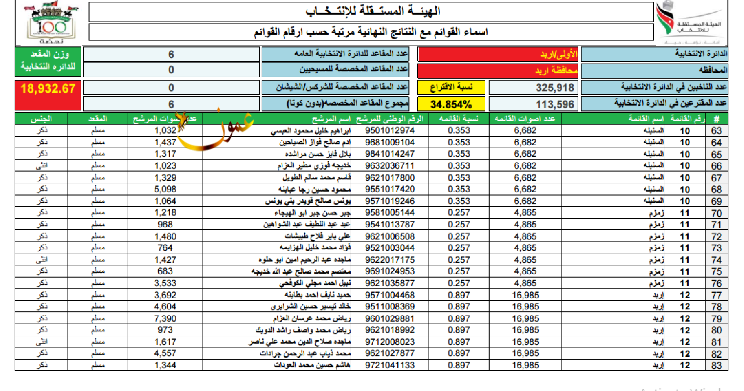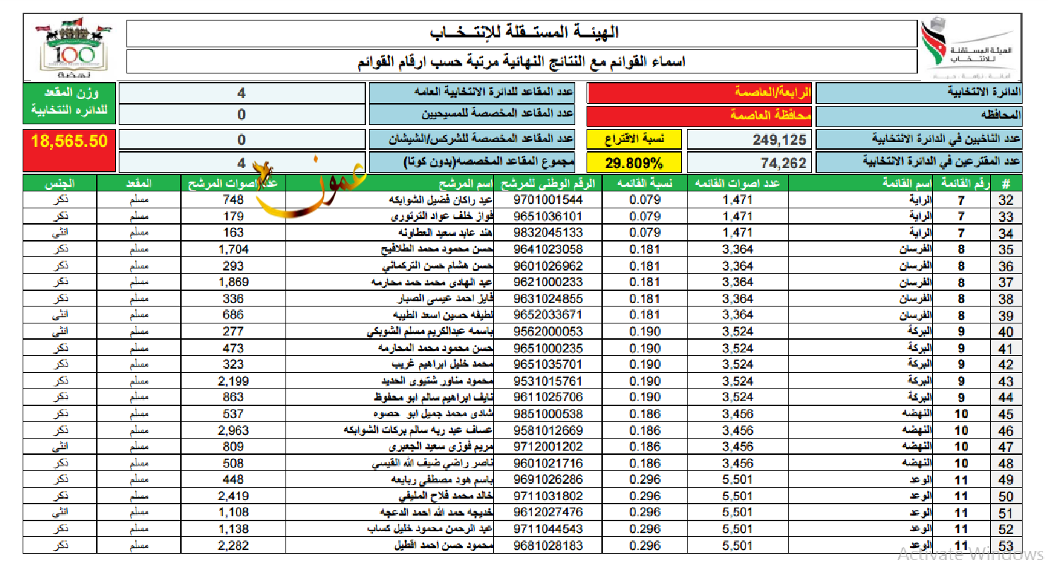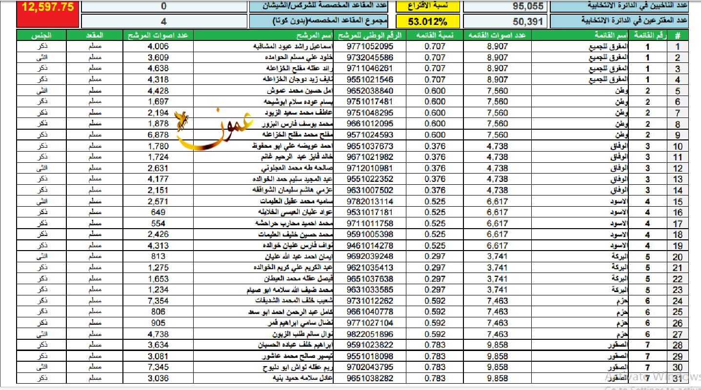 نتائج الانتخابات النيابية للناجحين ومن لم يحالفهم الحظ25-09-2016 04:18 PM