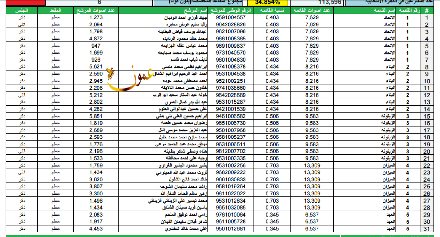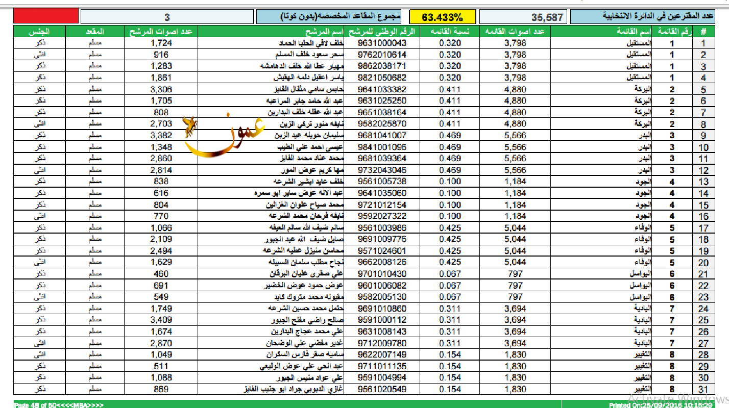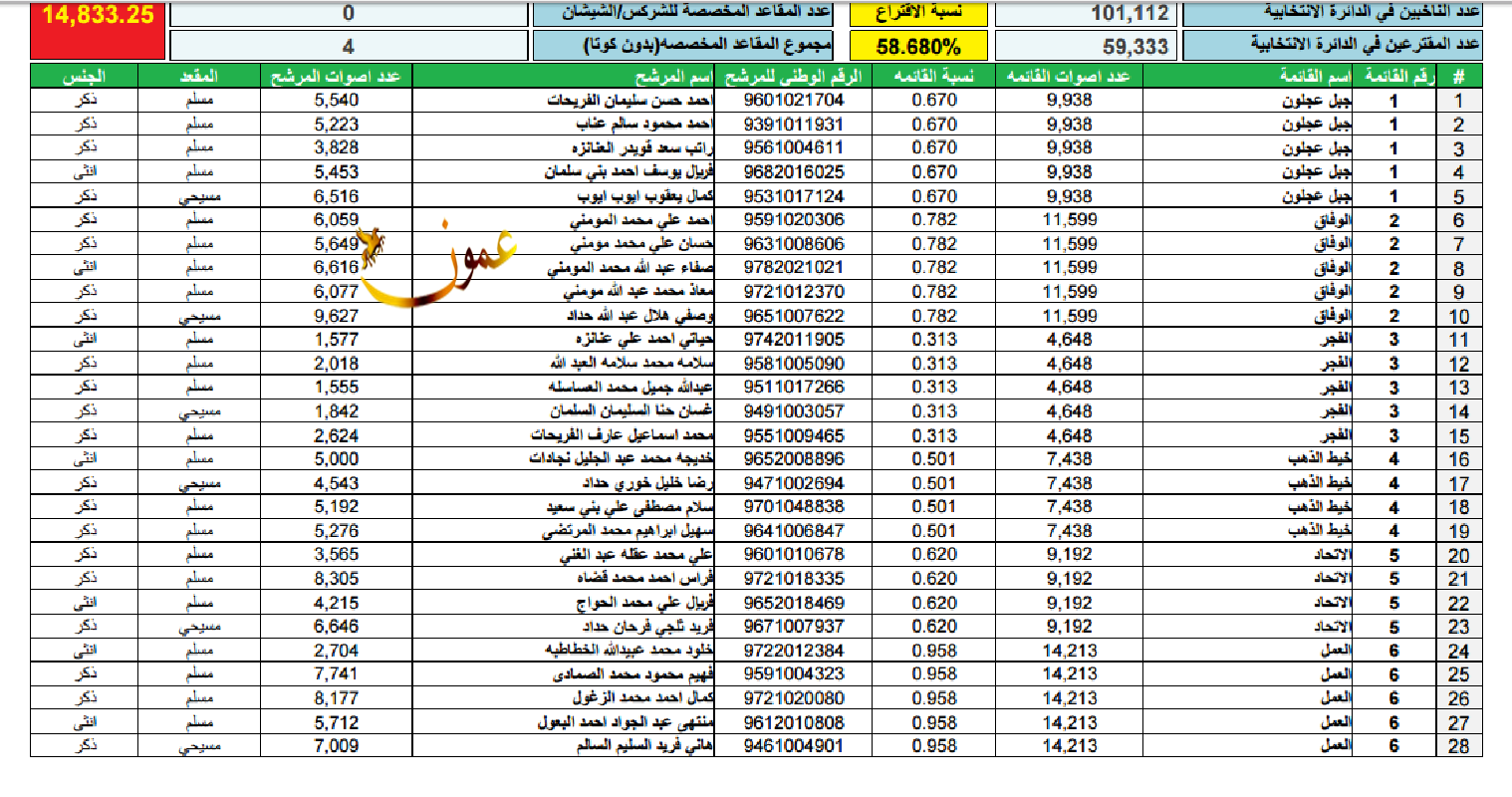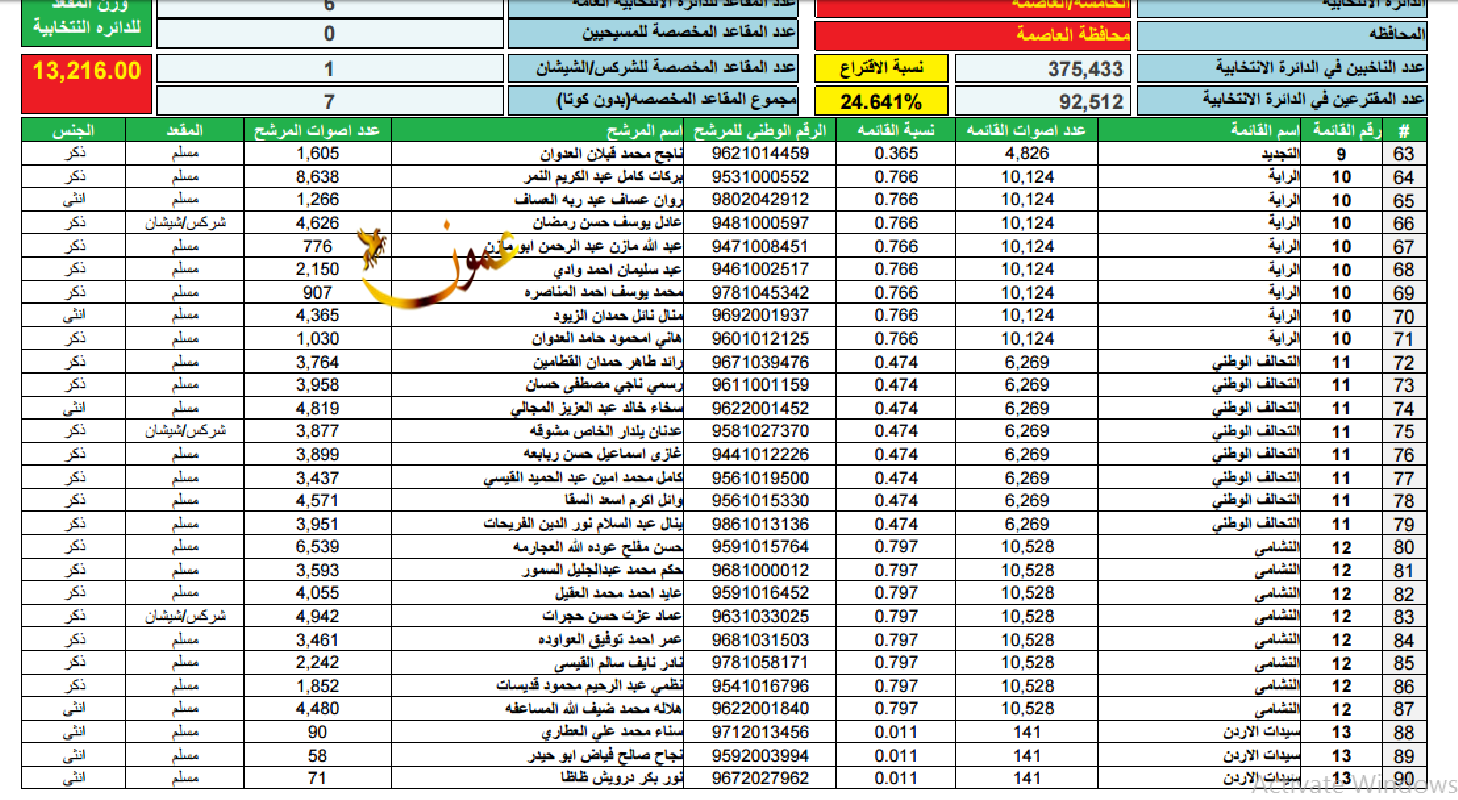 نتائج الانتخابات النيابية للناجحين ومن لم يحالفهم الحظ25-09-2016 04:18 PM