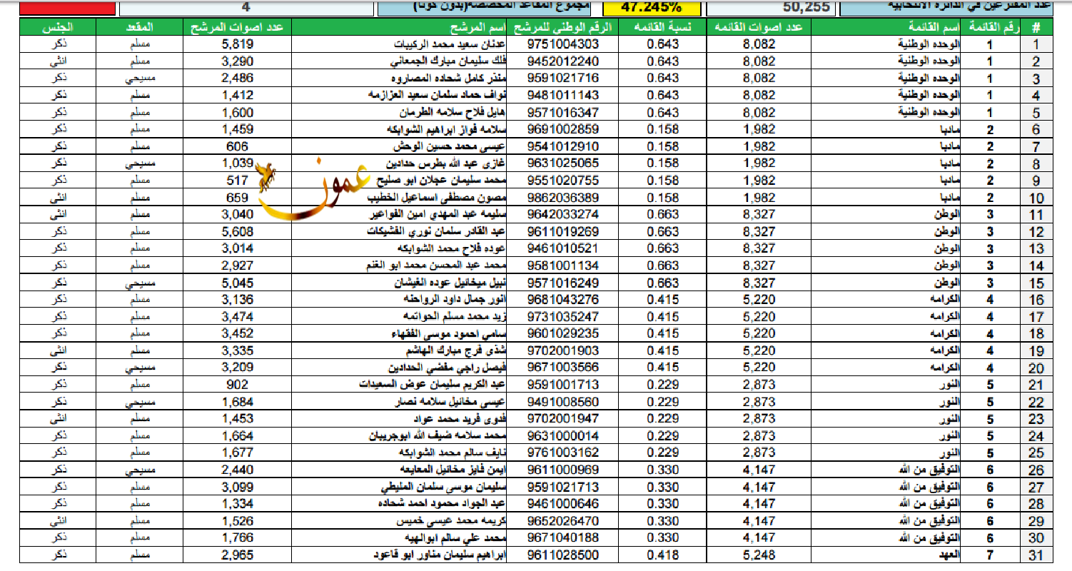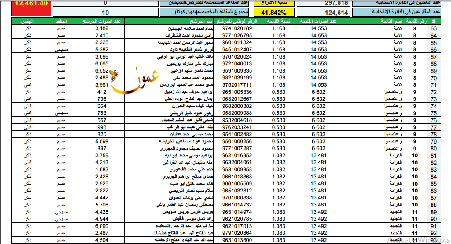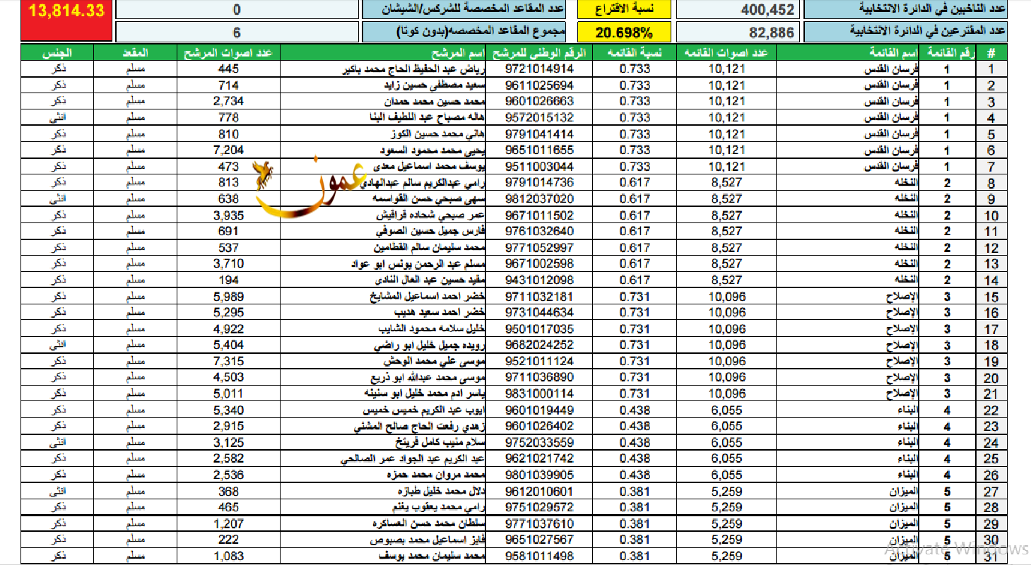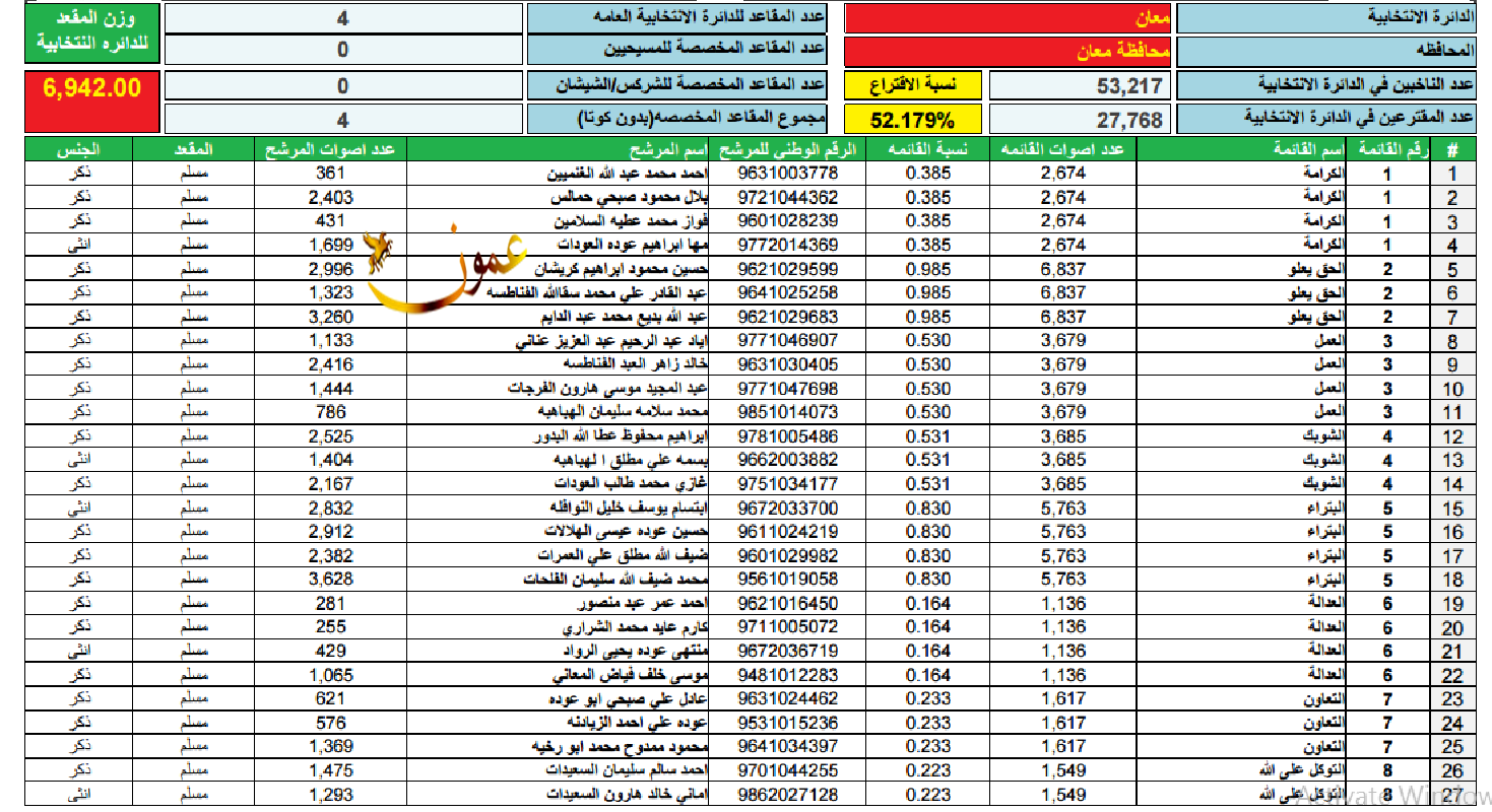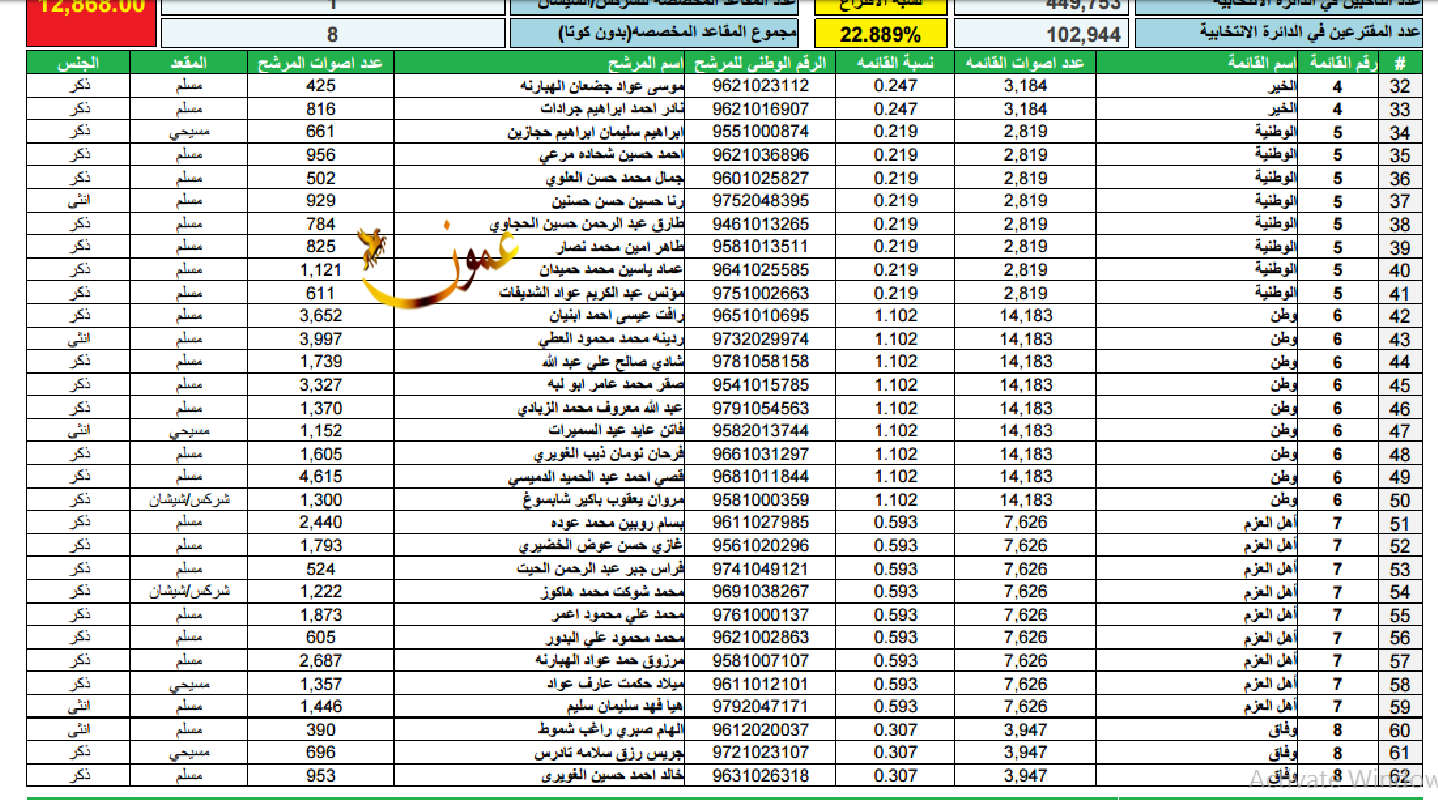 نتائج الانتخابات النيابية للناجحين ومن لم يحالفهم الحظ25-09-2016 04:18 PM