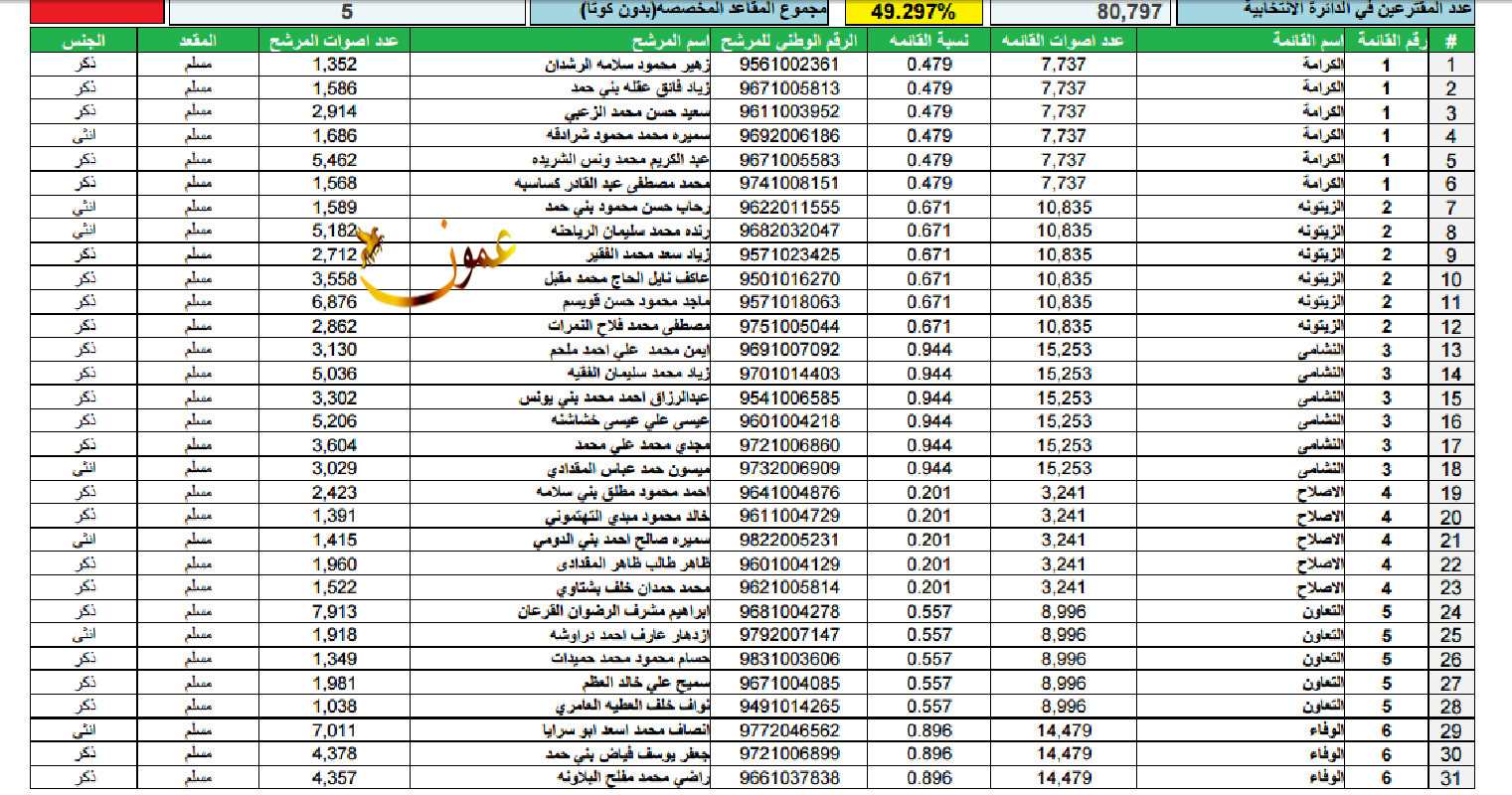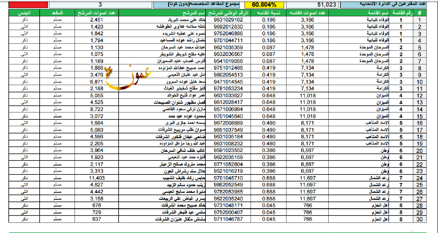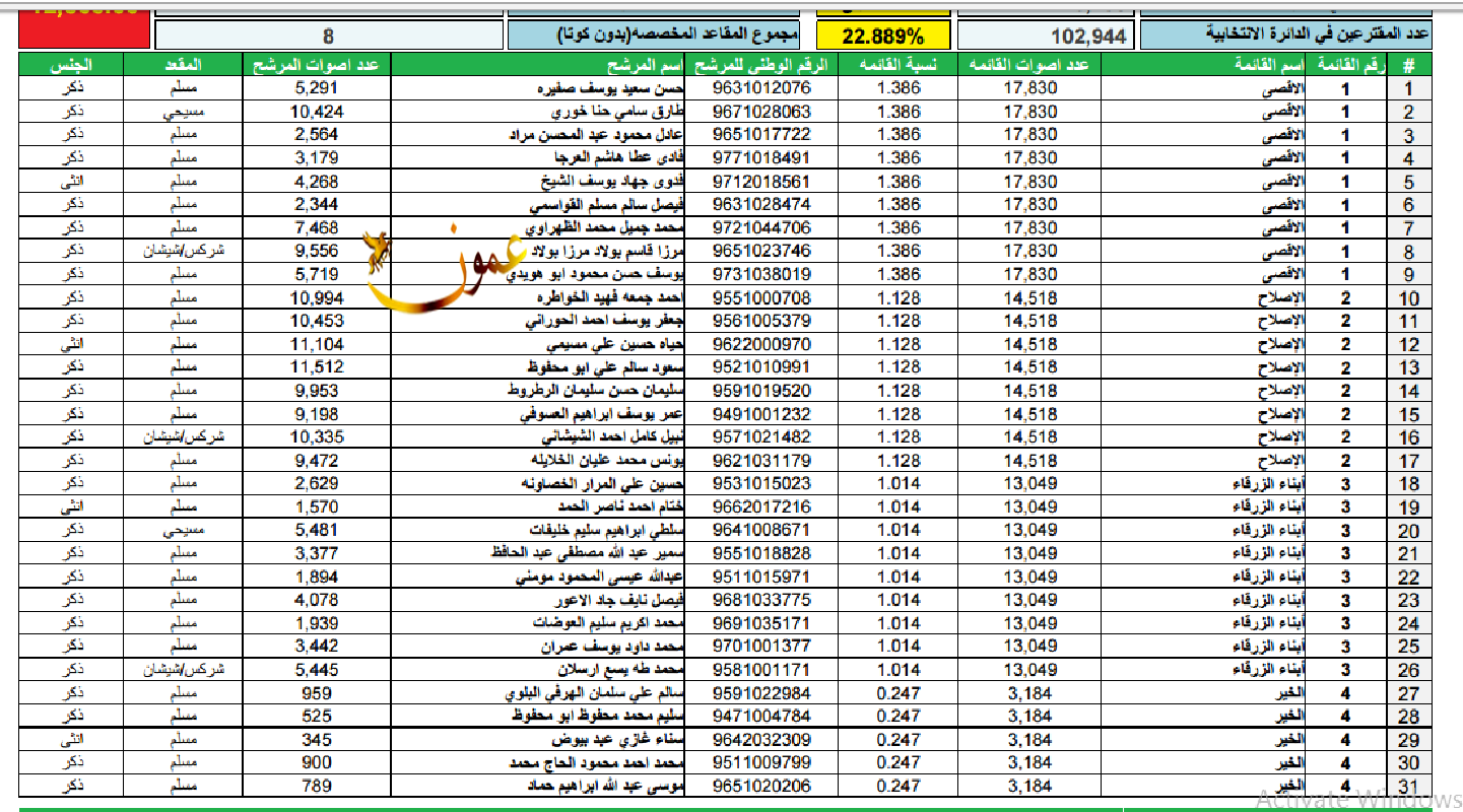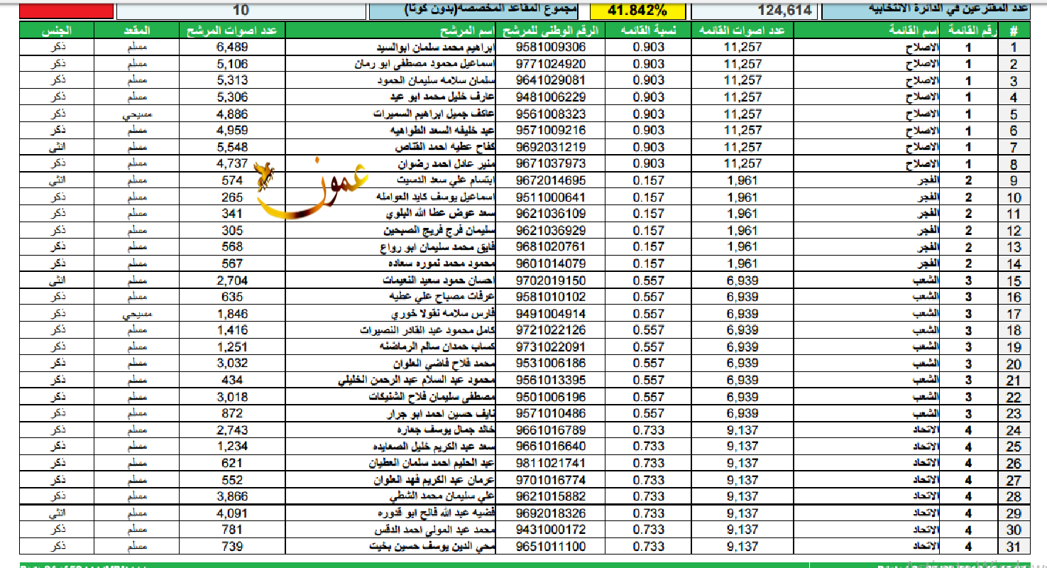 نتائج الانتخابات النيابية للناجحين ومن لم يحالفهم الحظ25-09-2016 04:18 PM