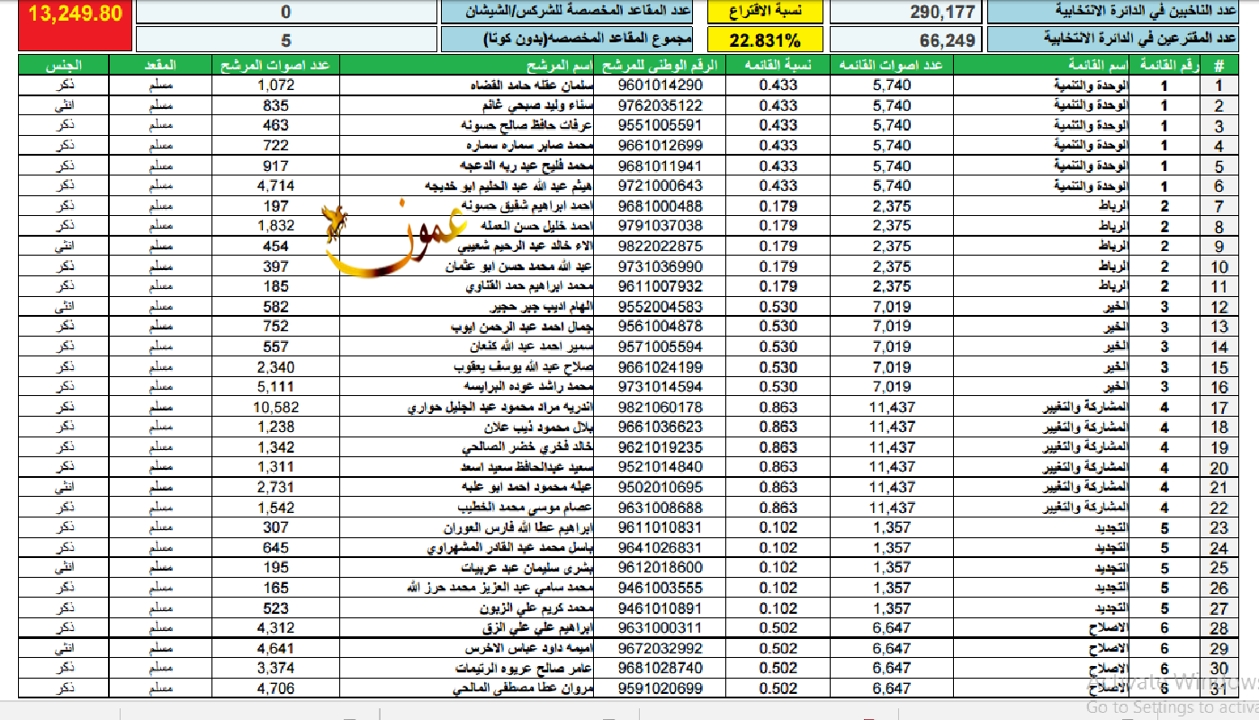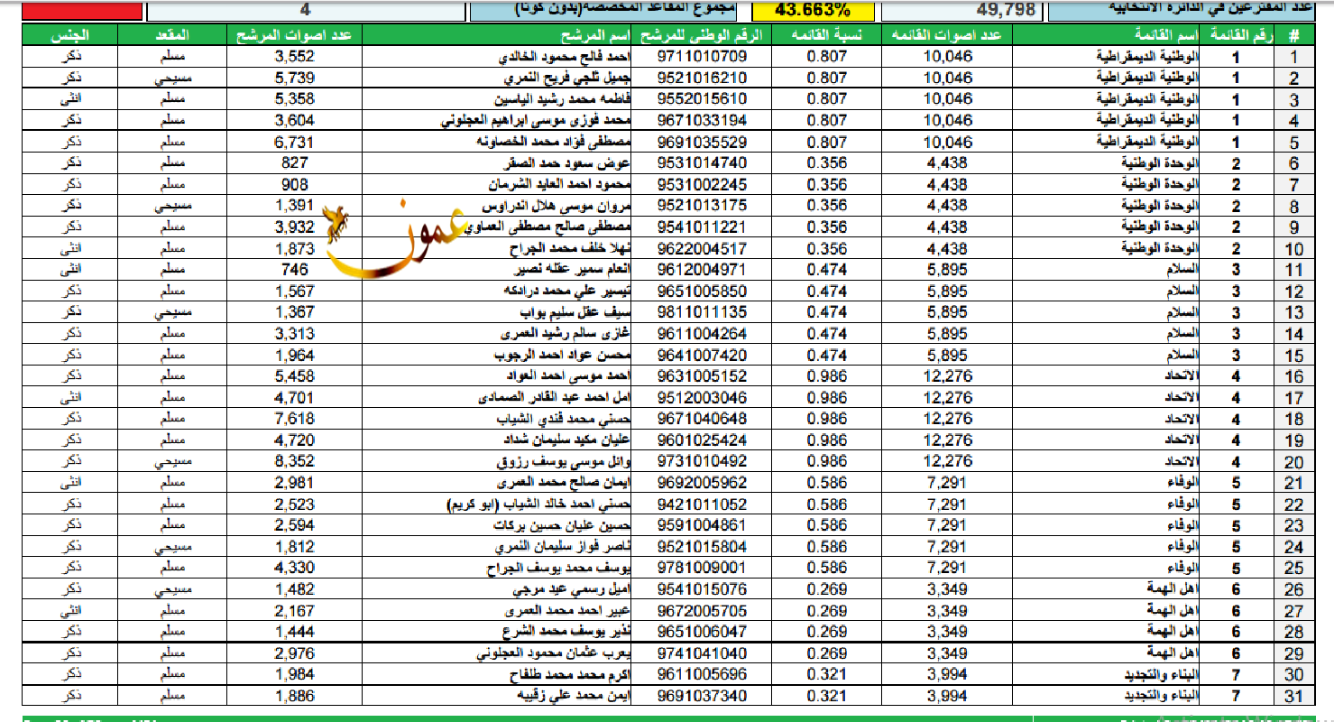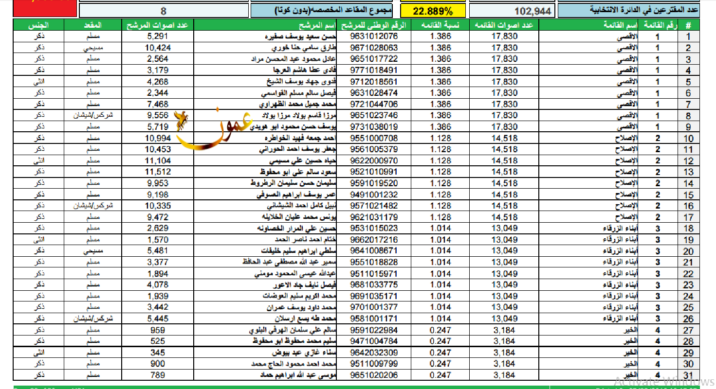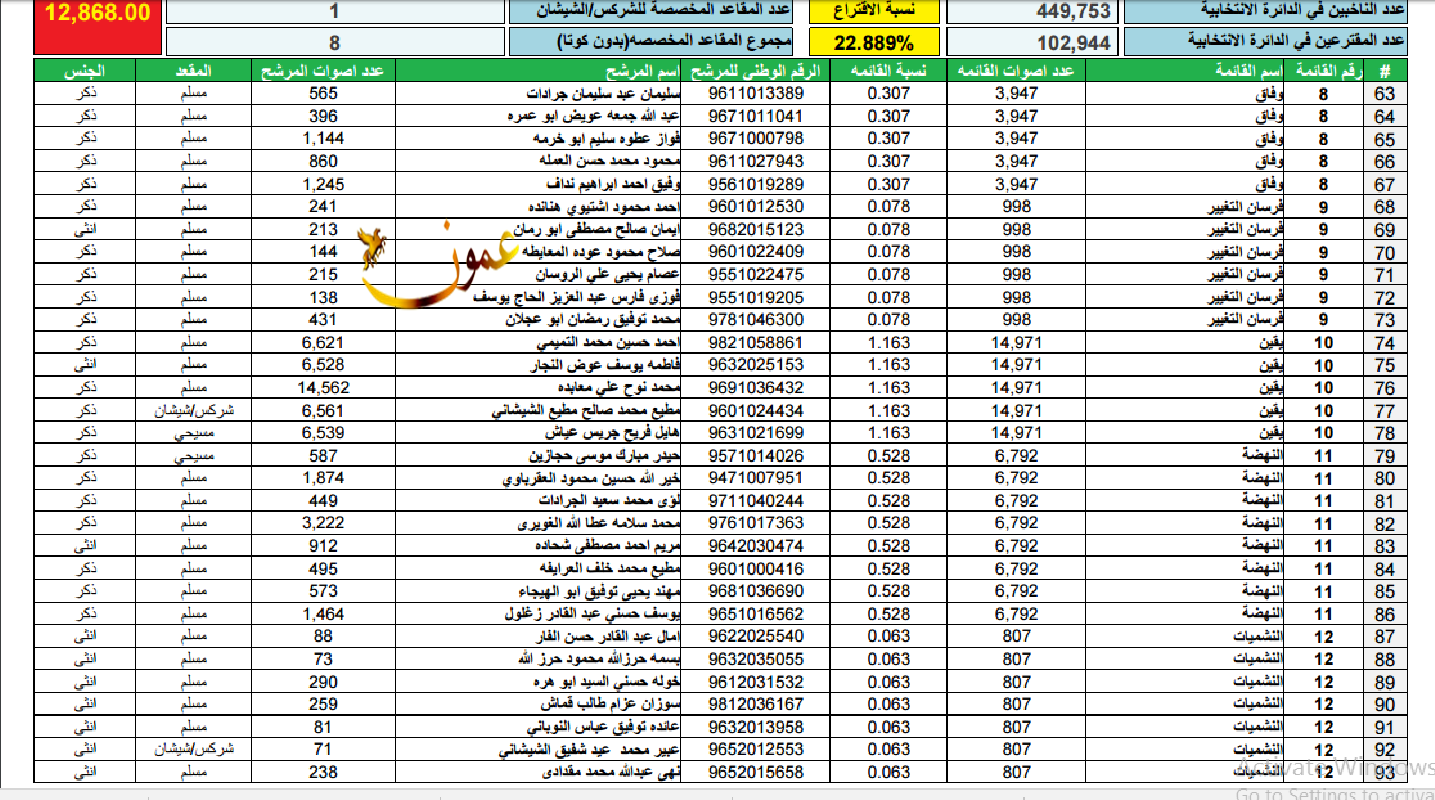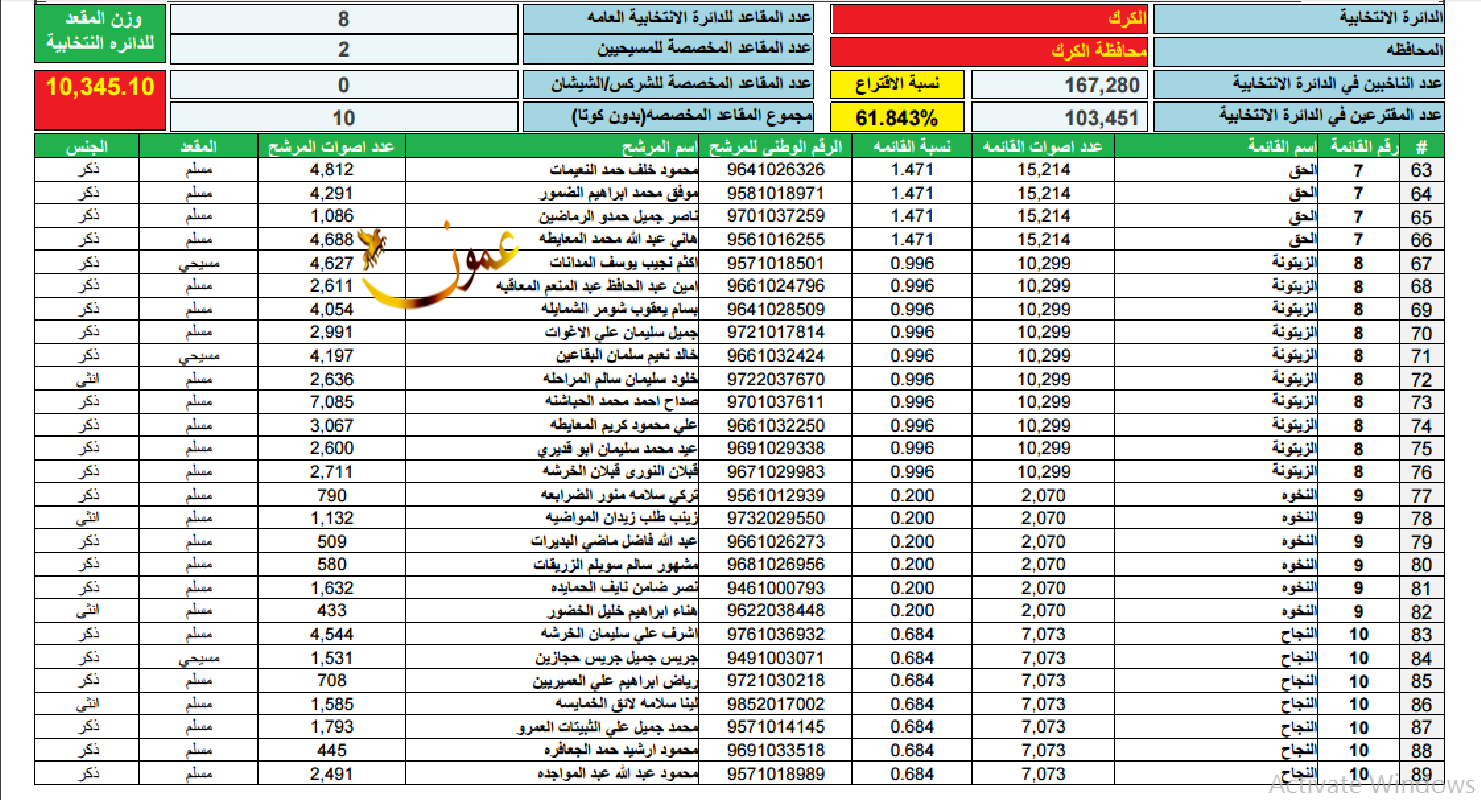 نتائج الانتخابات النيابية للناجحين ومن لم يحالفهم الحظ25-09-2016 04:18 PM