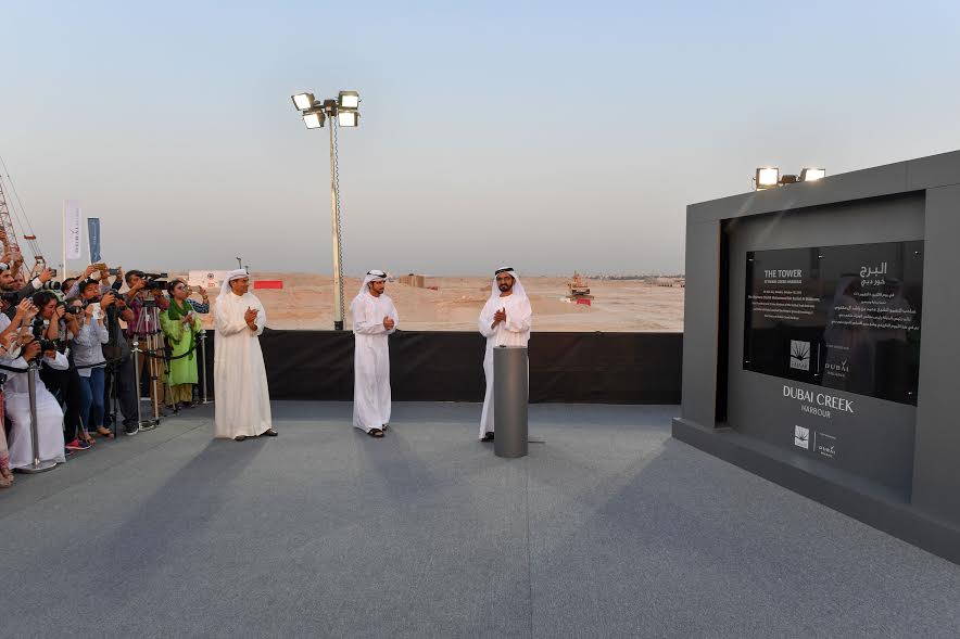 عمون - أطلق صاحب السمو الشيخ محمد بن راشد آل مكتوم، نائب رئيس الدولة رئيس مجلس الوزراء حاكم دبي، رعاه الله، يرافقه سمو الشيخ حمدان بن محمد بن راشد آل مكتوم، ولي عهد دبي وسمو الشيخ مكتوم بن محمد بن راشد آل مكتوم، نائب حاكم دبي، اليوم الأعمال الإنشائية لـ "برج خور دبي"، الصرح المعماري الجديد الذي من المنتظر أن يكون أطول بناء في العالم باكتمال أعماله الإنشائية في العام 2020 بشراكة بين "دبي القابضة" و"إعمار العقارية".