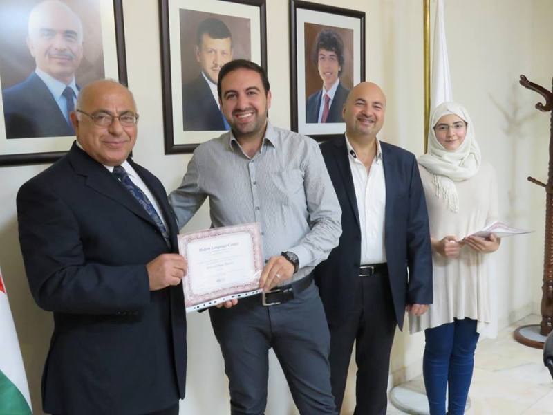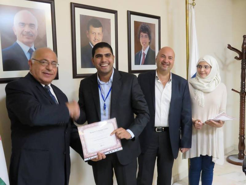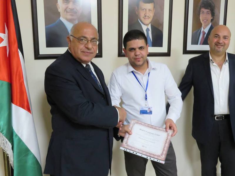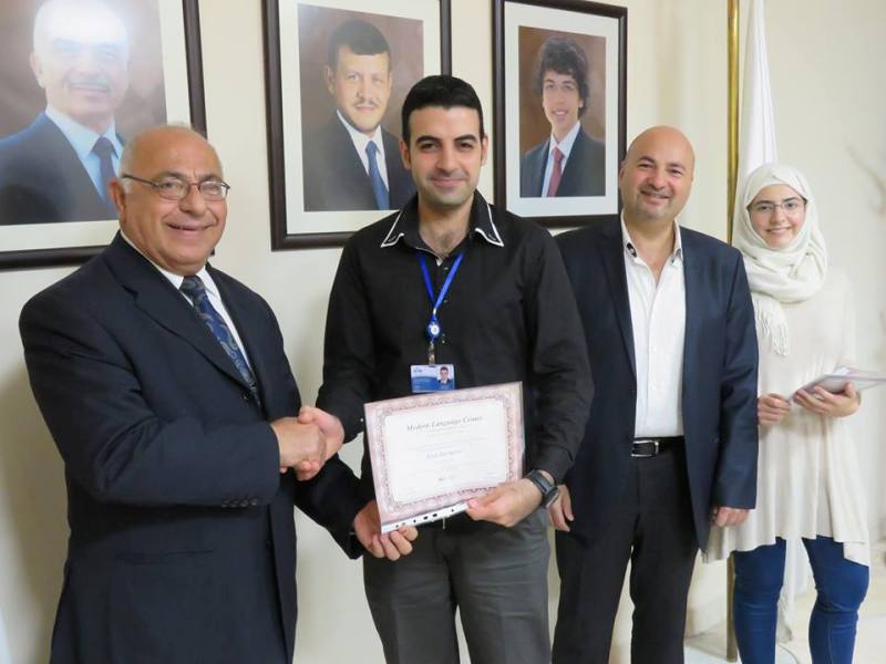 احتفل مركز اللغات الحديث بتخريج فوج جديد من طلاب دورات المحادثة باللغة الإنجليزية ومدتها 30 يوم بمشاركة عدد من موظفي بورصة عمان وبحضور المدير التنفيذي لبورصة عمان السيد نادر عازر والسيد فارس عوض مدير مركز اللغات الحديث.