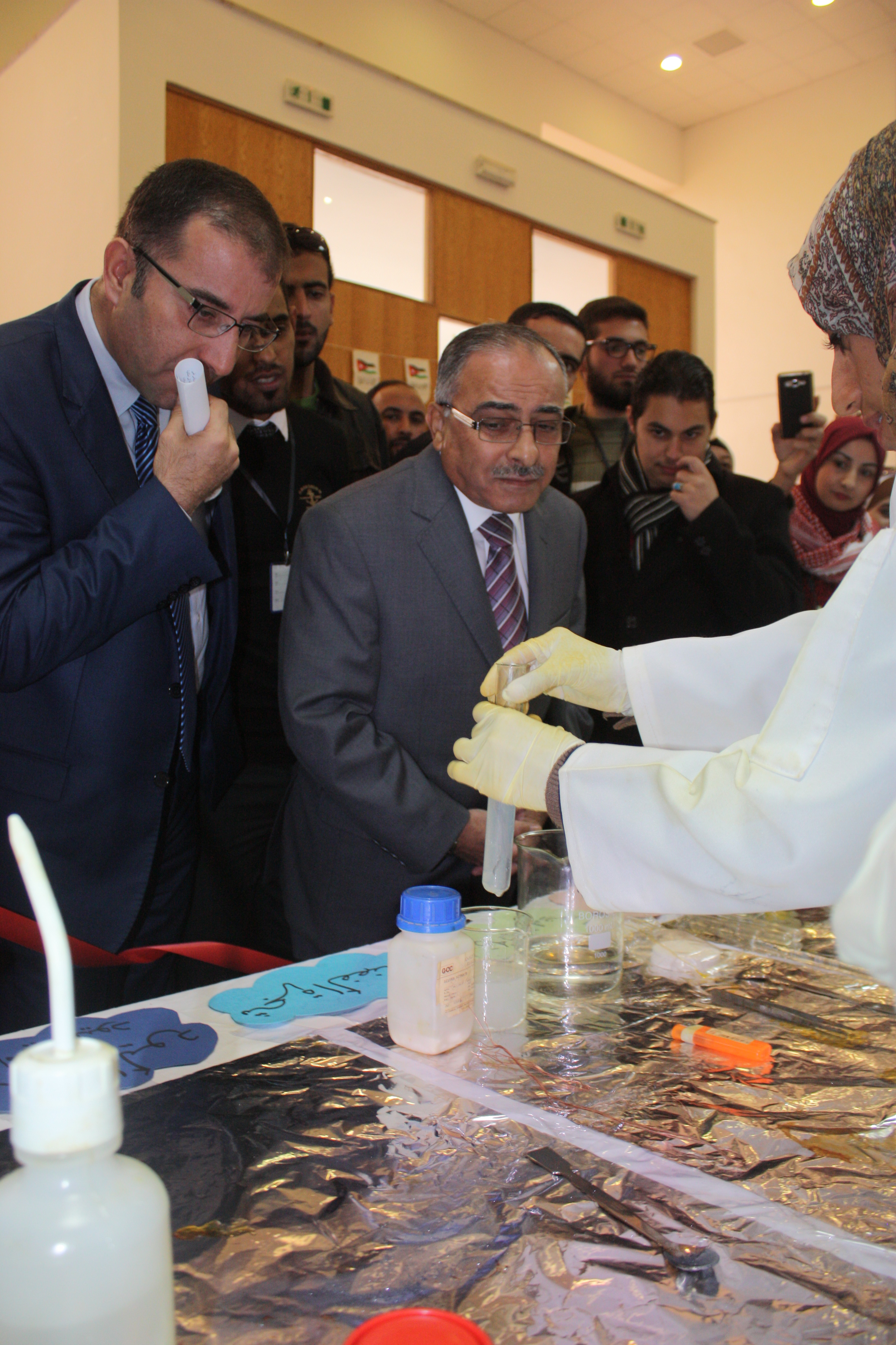 و قالت الدكتورة شيرين الصرايرة نائب عميد كلية العلوم في كلمتها : " و جامعة الحسين كمؤسسة أكاديمية رائدة و جزء لا يتجزأ من محيطها تنطلق بخطاً ثابتة باتجاه تحقيق الغاية و الهدف الذي جاءت من أجله الجامعات . و يأتي اليوم العلمي لكلية العلوم من أجل تجسيد روابط التعاون , و رفد قنوات التواصل بين عناصر الكلية من جهة و الطلبة من جهة أخرى للوصول الى علاقة تكميلية بين العلم و العمل بما يخدم الجامعة و محيطها" .