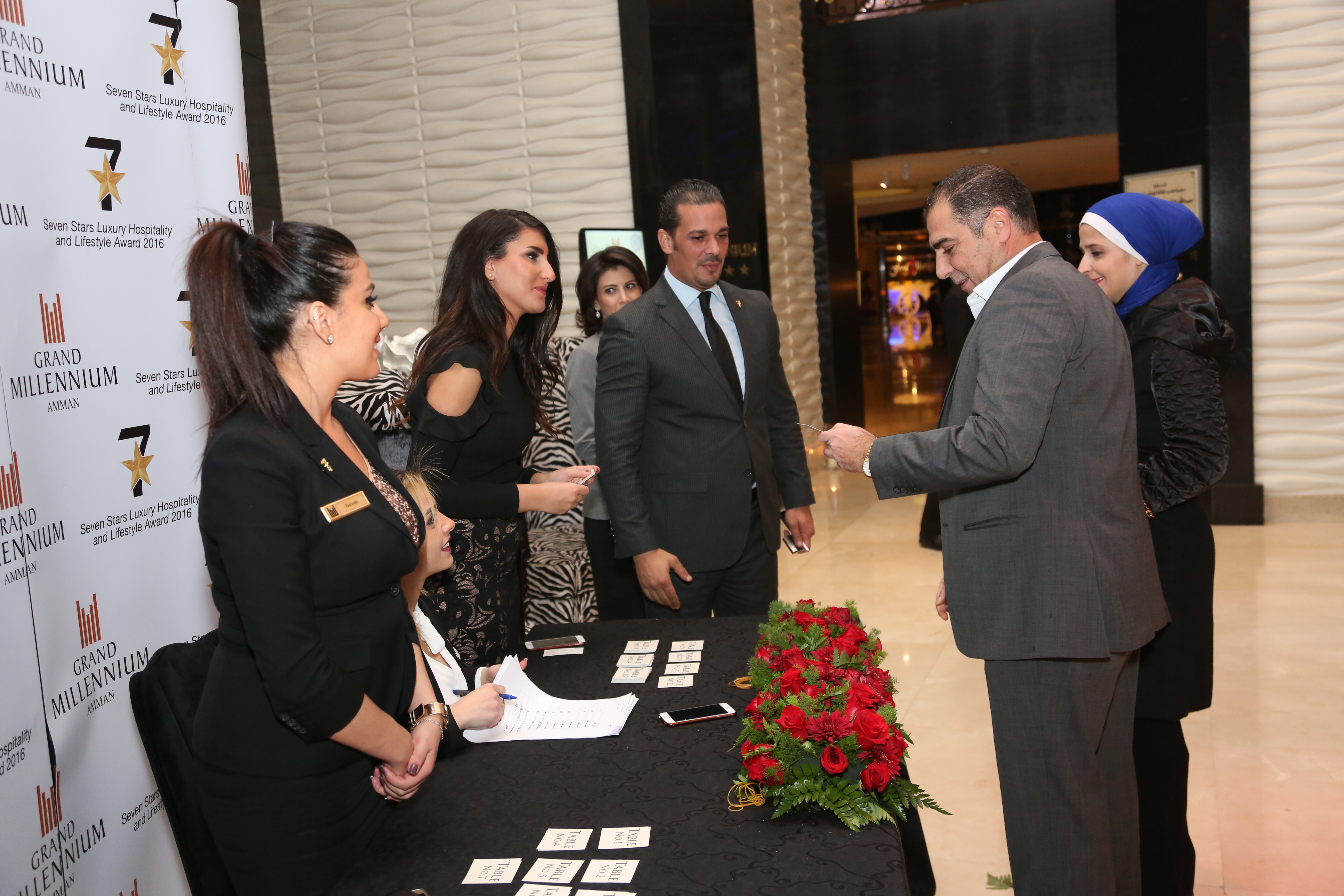 عمون- بمناسبة حصول فندق جراند ميلينيوم عمان على جائزة النجوم السبعة لأفضل فندق في الشرق الأوسط من قبل هيئة الفنادق العالمية الفاخرة، قام فندق جراند ميلينيوم عمان، وبدعوة من الدكتور ماجد الساعدي، رئيس مجلس إدارة الشركة الشرقية القابضة، بإقامة حفل عشاء ساهر يوم الخميس الموافق 1/12/2016. |