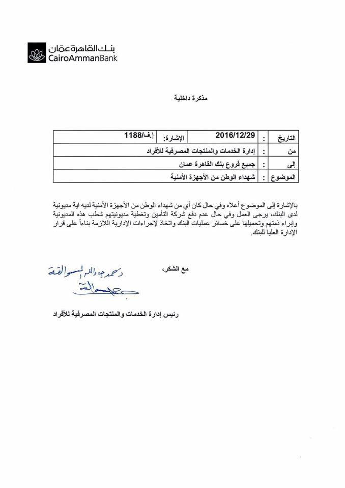 توضيح من بنك القاهرة عمان30-12-2016 01:06 AM