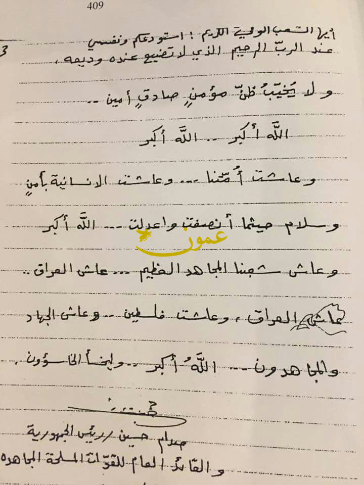 عمون - الرئيس العراقي الاسبق صدام حسين.... مرفق هنا الصور الوحيدة التي لم يشاهدها العرب لصدام والتي تعمدت الولايات المتحدة اخفاءها عن العالم العربي والاسلامي اضافة لقصيدة كتبها . |