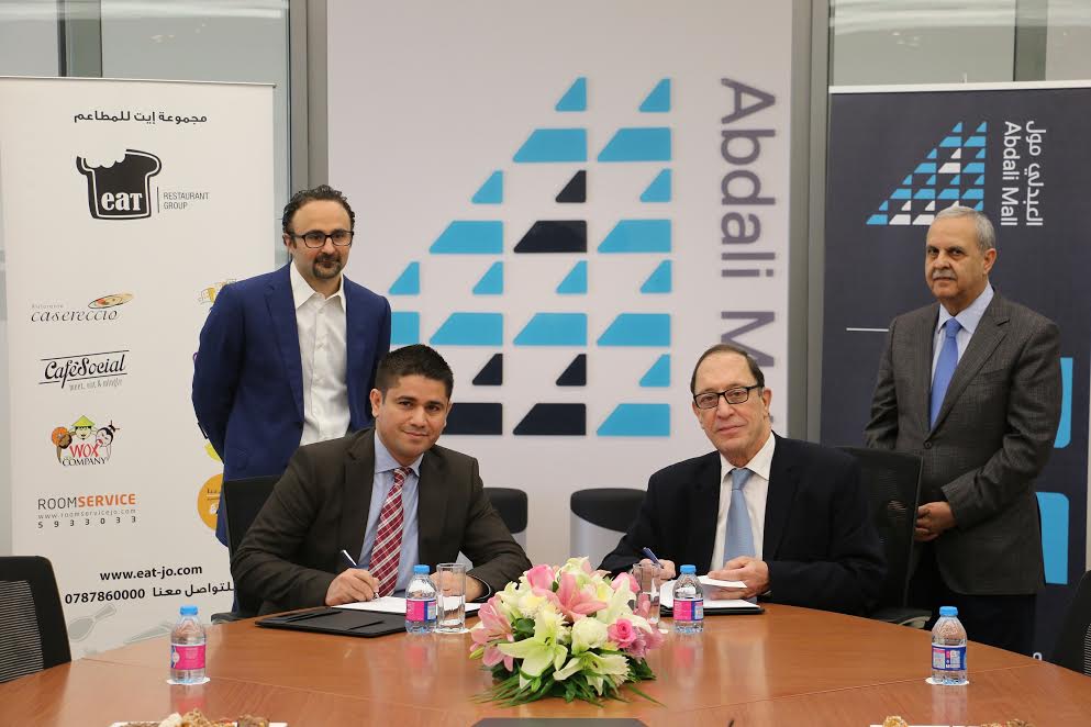 ووقع الاتفاقية عن مجموعة EAT للمطاعم، الرئيس التنفيذي هشام الزامل وعن شركة مول العبدلي المدير العام المهندس مروان أبو حسان كما شهد حفل التوقيع الذي أقيم في المول حضور الرئيس التنفيذي لشركة العقارات المتحدة الأردن عبد المجيد الكباريتي ورئيس مجلس إدارة مجموعة EAT للمطاعم في الأردن عمر الطباع. وعبّر المهندس مروان أبو حسّان، المدير العام لشركة مول العبدلي عن سعادته بهذه الاتفاقية قائلاً: "نحن سعداء بالتعاون مع مجموعة EAT للمطاعم إحدى الشركات الأردنية الرائدة في مجال المطاعم والتي كلنا ثقة بأنها ستقدم تجربة مميزة لرواد العبدلي مول من خلال المطاعم الأربعة والتي تتميز بتقديمها للوجبات المختلفة" وأضاف: " ستقوم هذه الشراكة على توفير فرص عمل للشباب الأردني، وهذا ما يحقق الدور التنموي للمول في مجتمعنا المحلي".