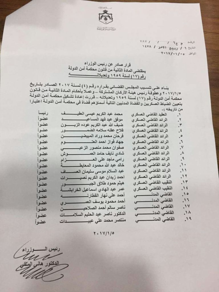 اعادة تشكيل محكمة أمن الدولة (أسماء)09-01-2017 03:07 PM