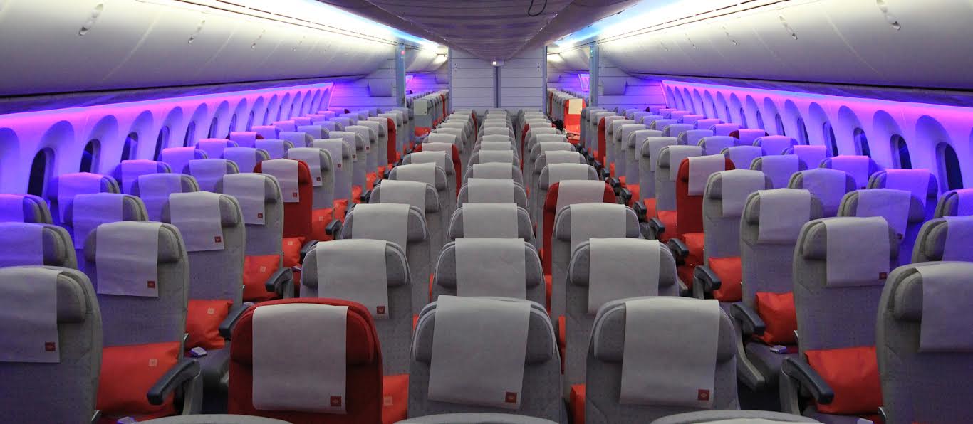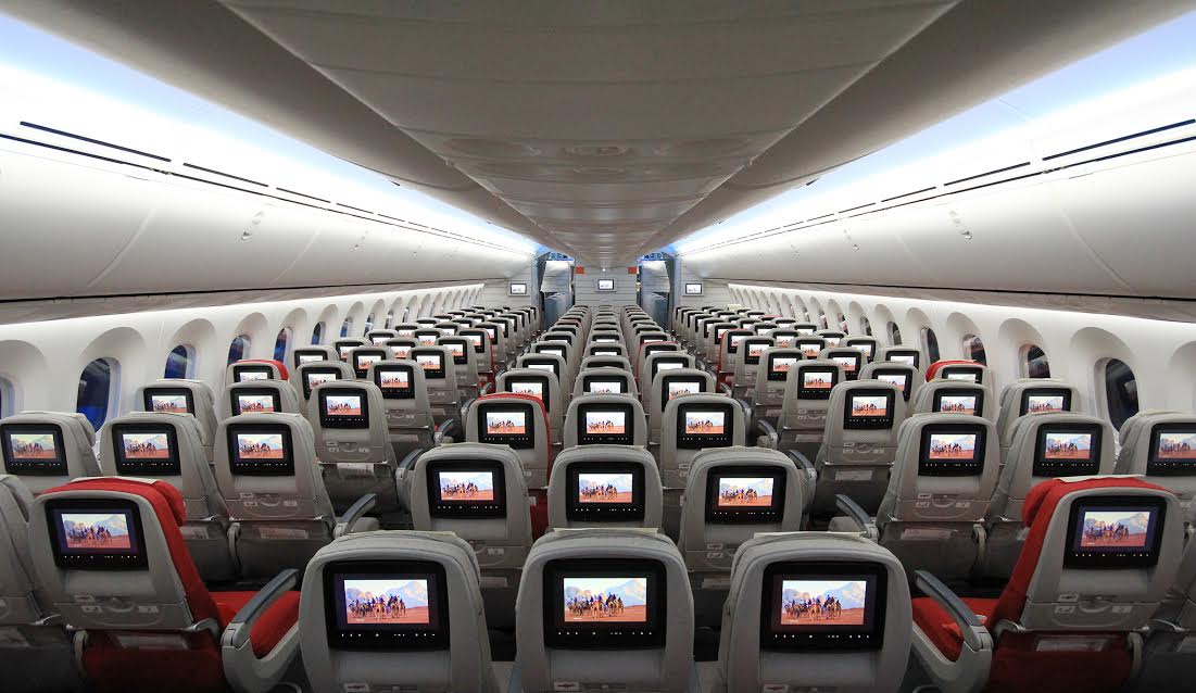 - المسافة بين المقاعد : 60 إنش بين مقاعد درجة رجال الأعمال، و31-35 إنش بين مقاعد الدرجة السياحية .