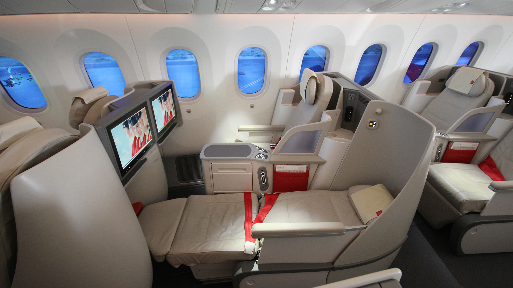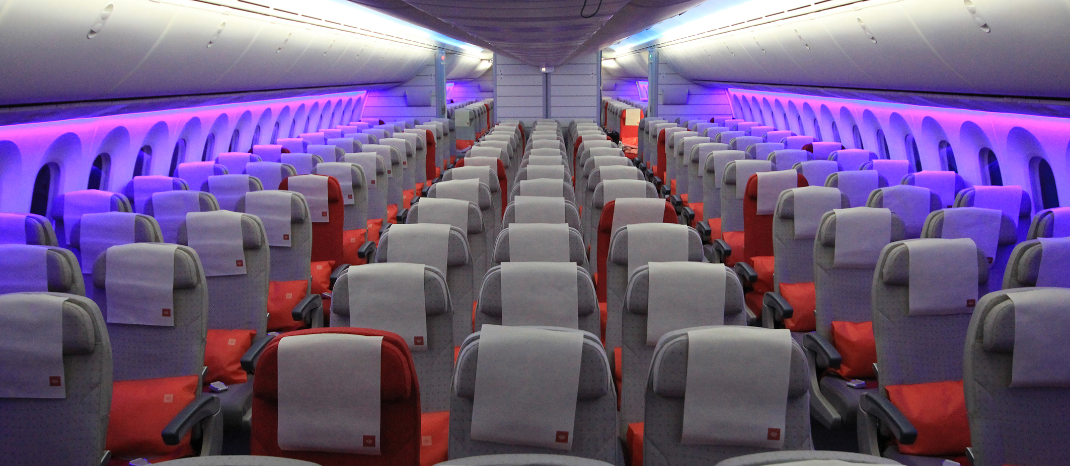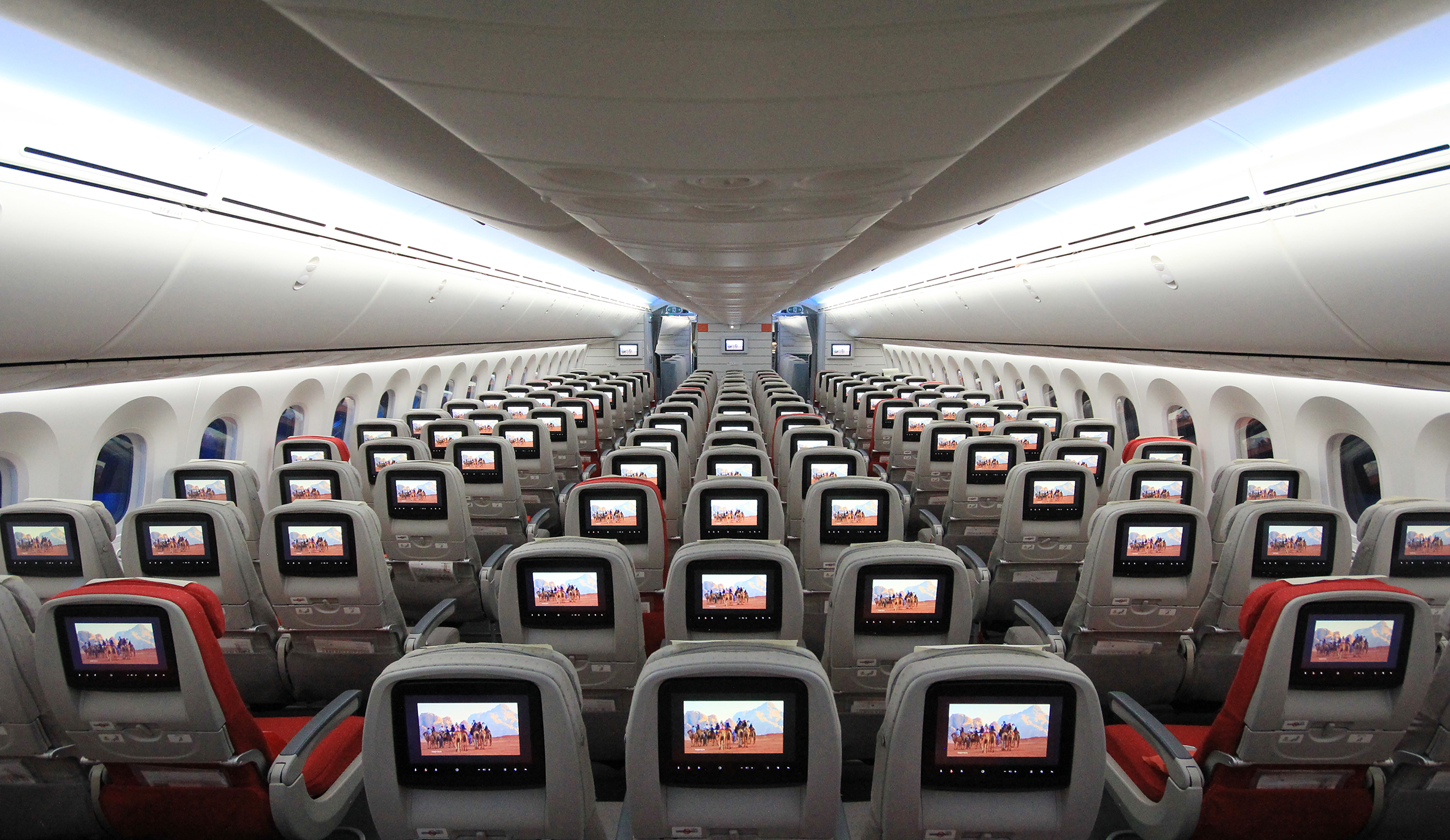 المسافة بين المقاعد : 60 إنش بين مقاعد درجة رجال الأعمال، و31-35 إنش بين مقاعد الدرجة السياحية.