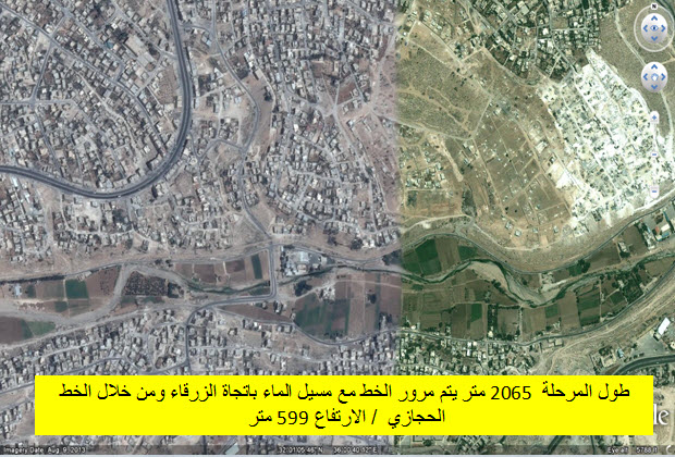 الجانب الجغرافي ( الطبيعة). ان القاعدة في عملية جريان المياه ، ان الماء يسيل عبر اقصرا لطرق من المناطق المرتفعة الى المنخفضة ، فاذا قمنا بتتبع المياه التي تسقط في فصل الشتاء ، من منطقة راس العين (ترتفع 938 مترا عن سطح البحر) والمناطق المحيطة بها من جبال عمان ، فهي تنتهي عبر سيل الزرقاء مرورا بمنطقة السخنة ( 614 متر عن سطح البحر ) الى سد الملك طلال (جرش) ، والحل في الدراسة كانت بإنشاء جسور معلقة فوق مسيل السيل ، والتي تقارب 35 كم من عمان الى الزرقاء ( السخنة) او حفر قناة واسعة ( نفق ) للمياه اسفل خط سكة الحديد الجديدة .