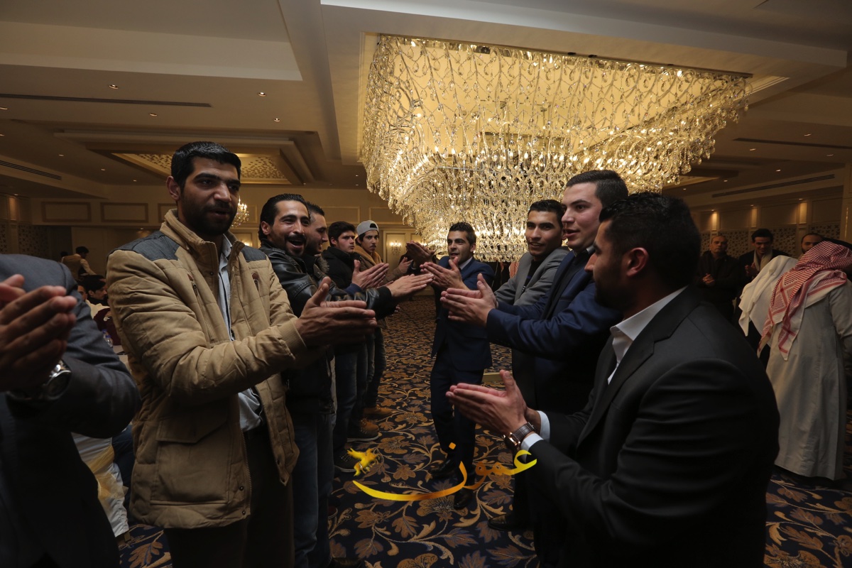 عمون-في أجواء الفرح والسعادة الغامرة وحضور جمع غفير من الاقارب، الاصدقاء والمحبين من وجهاء وشيوخ العشائر من كافة أطياف المملكة، أقام الحاج عبد الحميد شاكر أبو عرابي العدوان (أبو فراس) مأدبة عشاء بمناسبة زفاف نجله "فراس" على كريمة الحاج زايد محمد النعيمات وذلك مساء يوم الجمعة 2017/2/4.