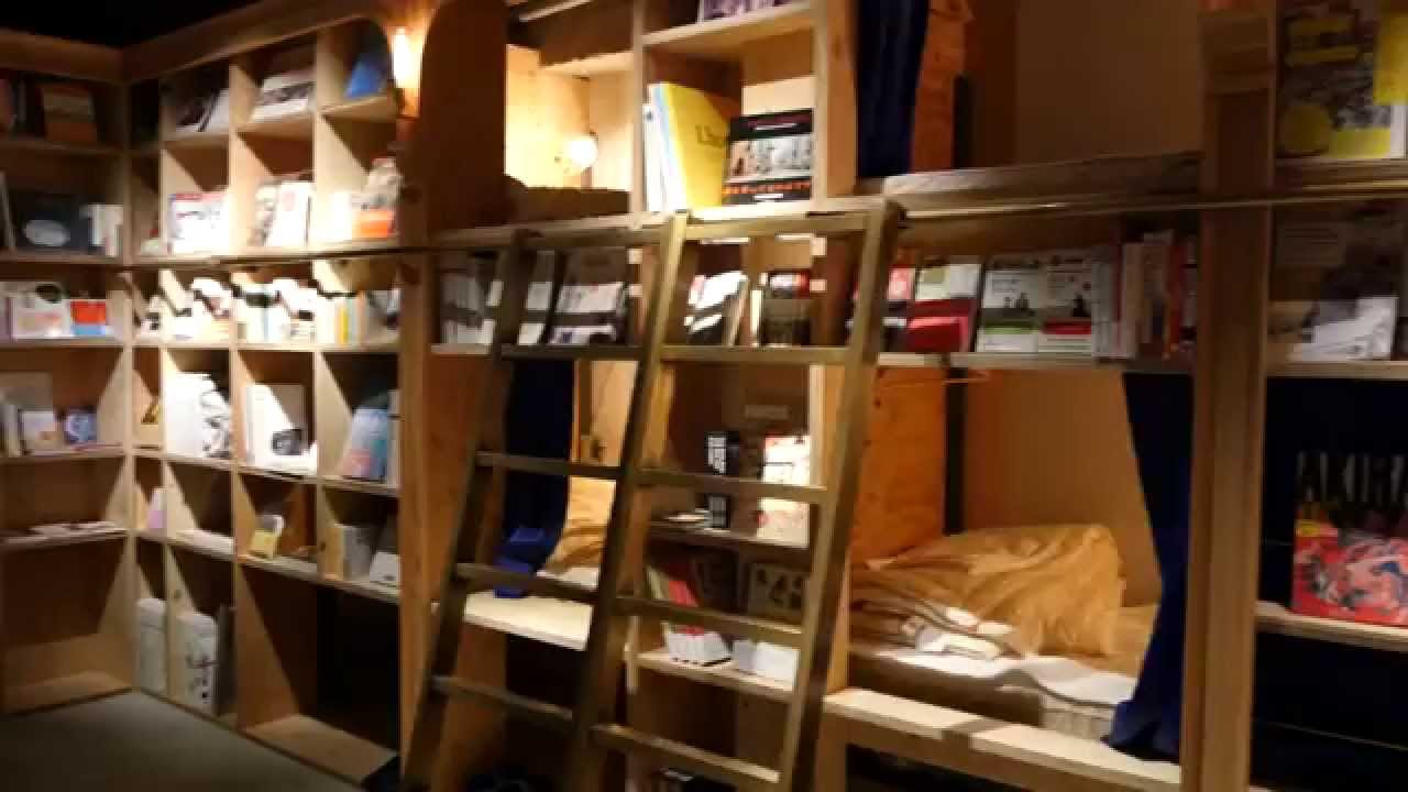 وضمن مجموعة متنوعة من فنادق الكبسولة الشهيرة في اليابان يوفر فندق "بوك آند بيد طوكيو" أسِرة في حجم الخزانة داخل أرفف الكتب.