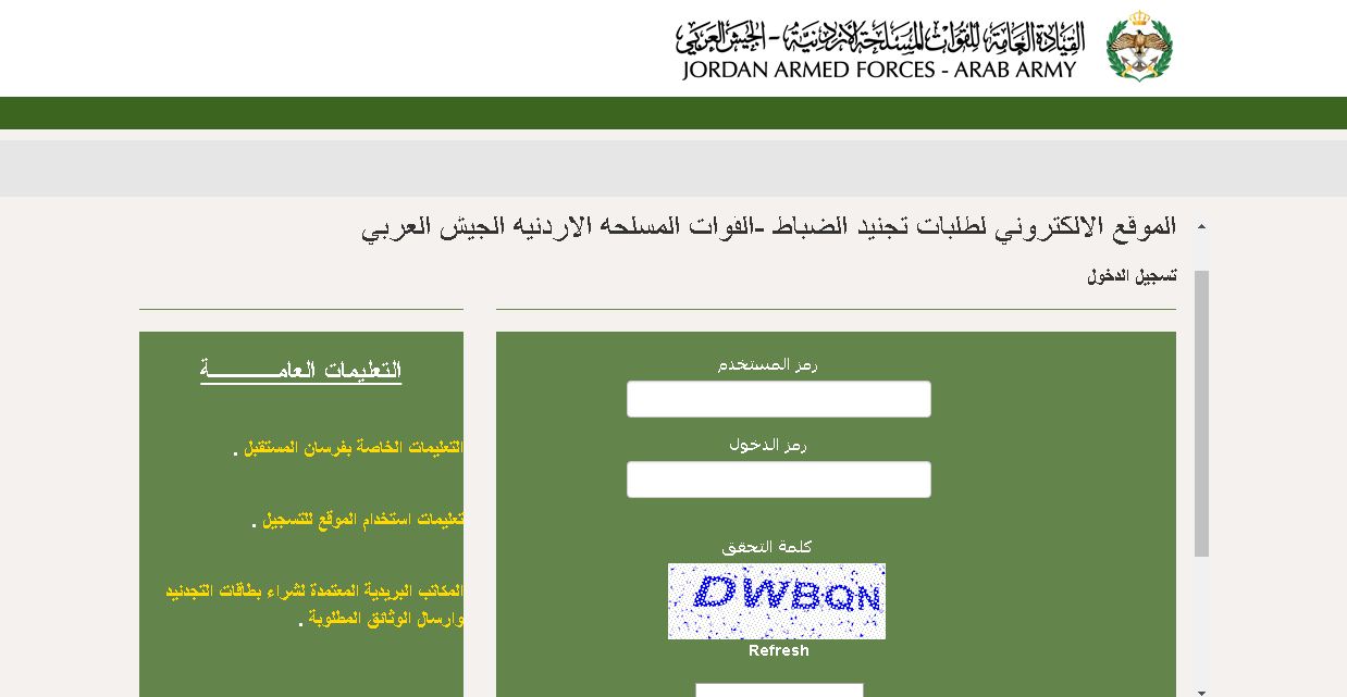 عمون- أطلقت القيادة العامة للقوات المسلحة الأردنية – الجيش العربي، الموقع الإلكتروني لطلبات تجنيد الضباط أمس الأحد، وبرعاية رئيس هيئة الأركان المشتركة الفريق الركن محمود عبدالحليم فريحات بهدف الارتقاء بآلية تقديم طلبات تجنيد الضباط وبأسلوب جديد يعكس المكانة المرموقة التي تتمتع بها قواتنا المسلحة. بترا |