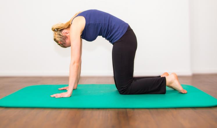 يبدأ هذا التمرين من وضع الارتكاز على الركبتين واليدين مع فرد الظهر تماما والنظر لأسفل، وبعد ذلك يتم تقويس الظهر ببطء، إلى أن يصبح الظهر مستديرا تماما، ثم يتم الرجوع إلى الوضع الأصلي، ويتم تكرار هذا التمرين عشر مرات.