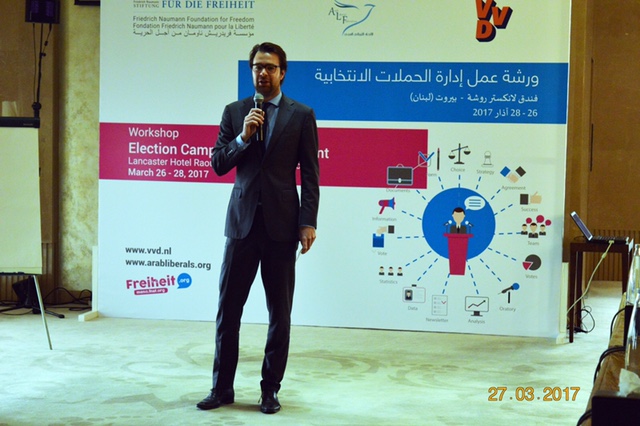 عمون- في اجتماع شمل أكثر من 25 ممثلا للأحزاب والمؤسسات الداعمة لقيم السوق الحر وسيادة القانون من مختلف دول الإقليك، انطلقت ورشة عمل "إدارة الحملات الانتخابية" والتي نظمتها مؤسسة فريدريش ناومان الألمانية بالتعاون مع حزب الشعب من أجل الحرية والديموقراطية (VVD) والاتحاد الليبرالي العربي في العاصمة اللبنانية بيروت.
