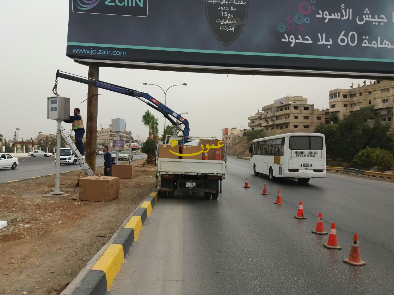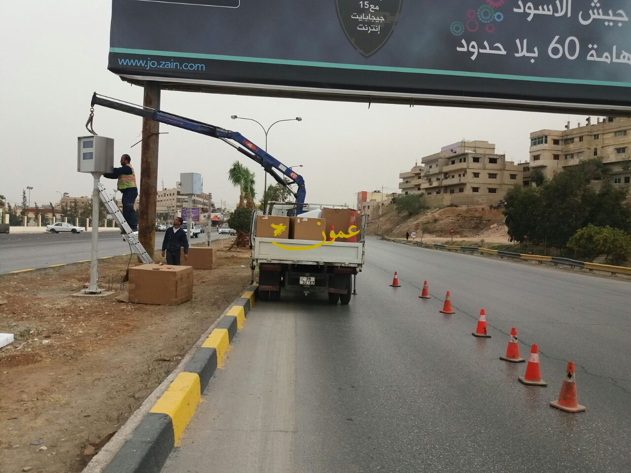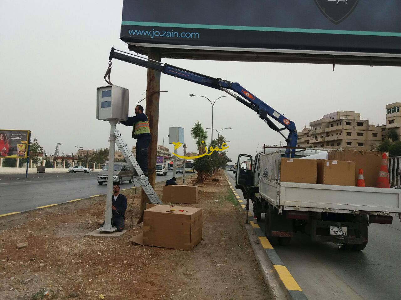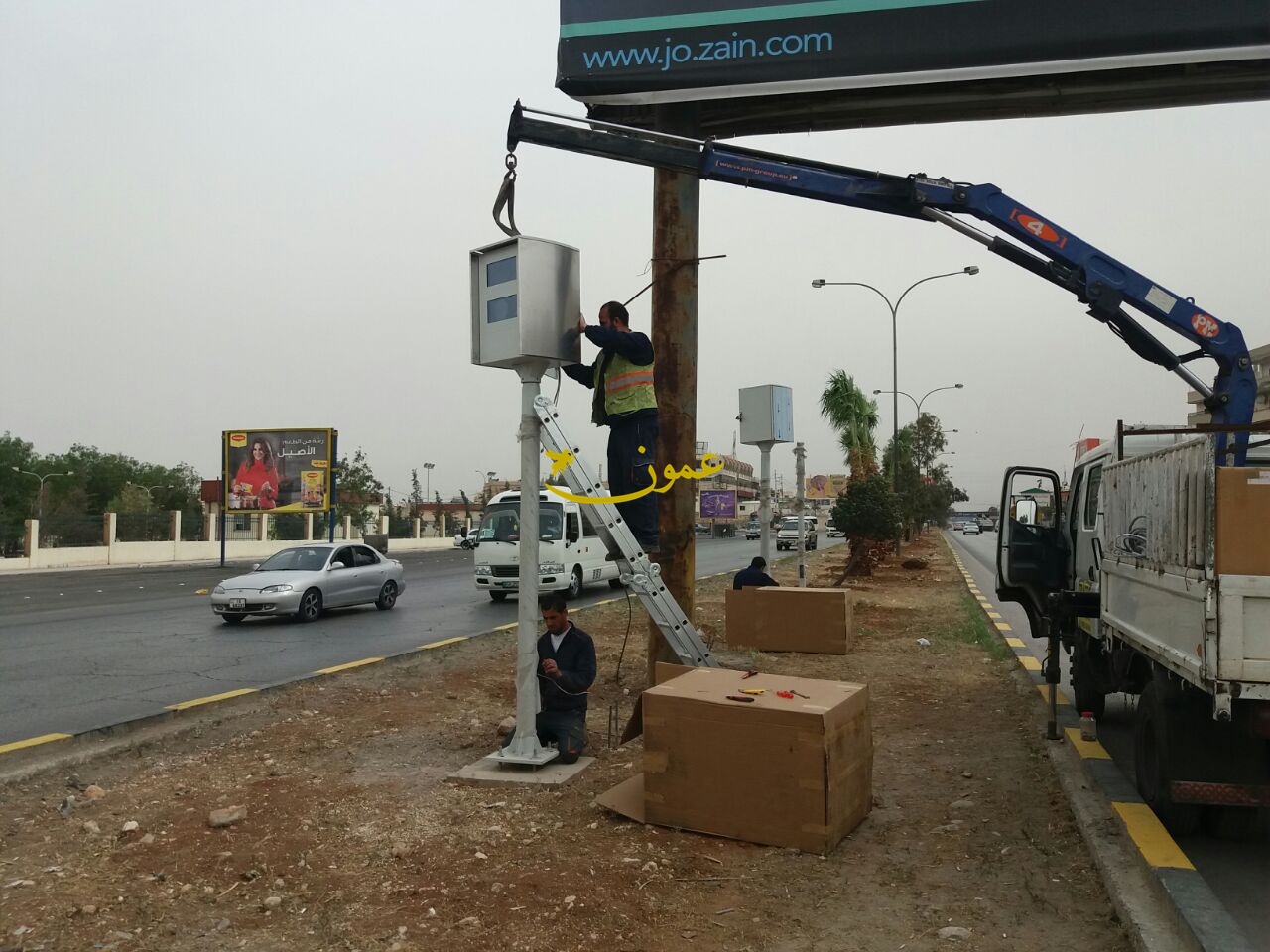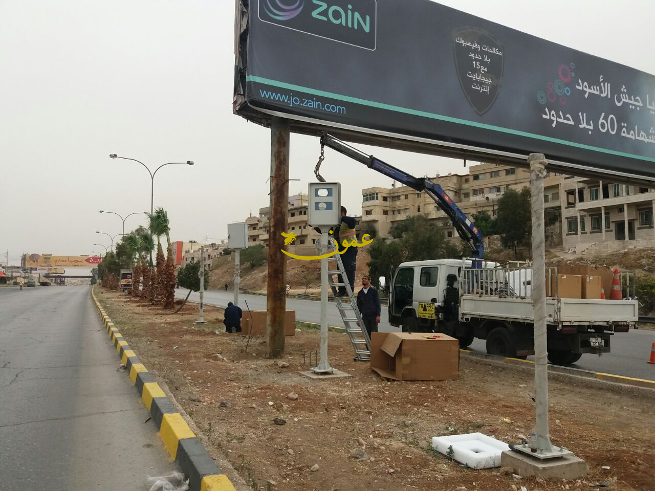 عمون - ينال المعاني - باشرت الشركة المنفذة لعطاء وزارة الشؤون البلدية الخاص بتركيب كاميرات مخالفات السرعة وقطع الاشارة الضوئية الحمراء اليوم الخميس بتركيب اول كاميرا رادار لمخالفات السرعة الزائدة عن الحد المقرر ضمن حدود بلدية الزرقاء. |