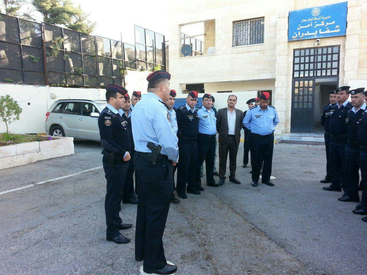 عمون - ينال المعاني - تفقد مدير شرطة شمال عمان العقيد علي الزعبي صباح اليوم الخميس مركز امن شفا بدران. |