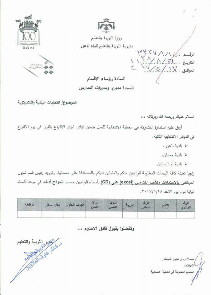 التربية تعمم لموظفيها استمارة المشاركة في الانتخابات18-05-2017 01:32 PM