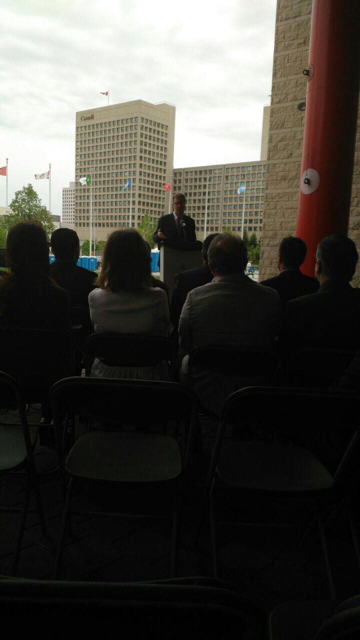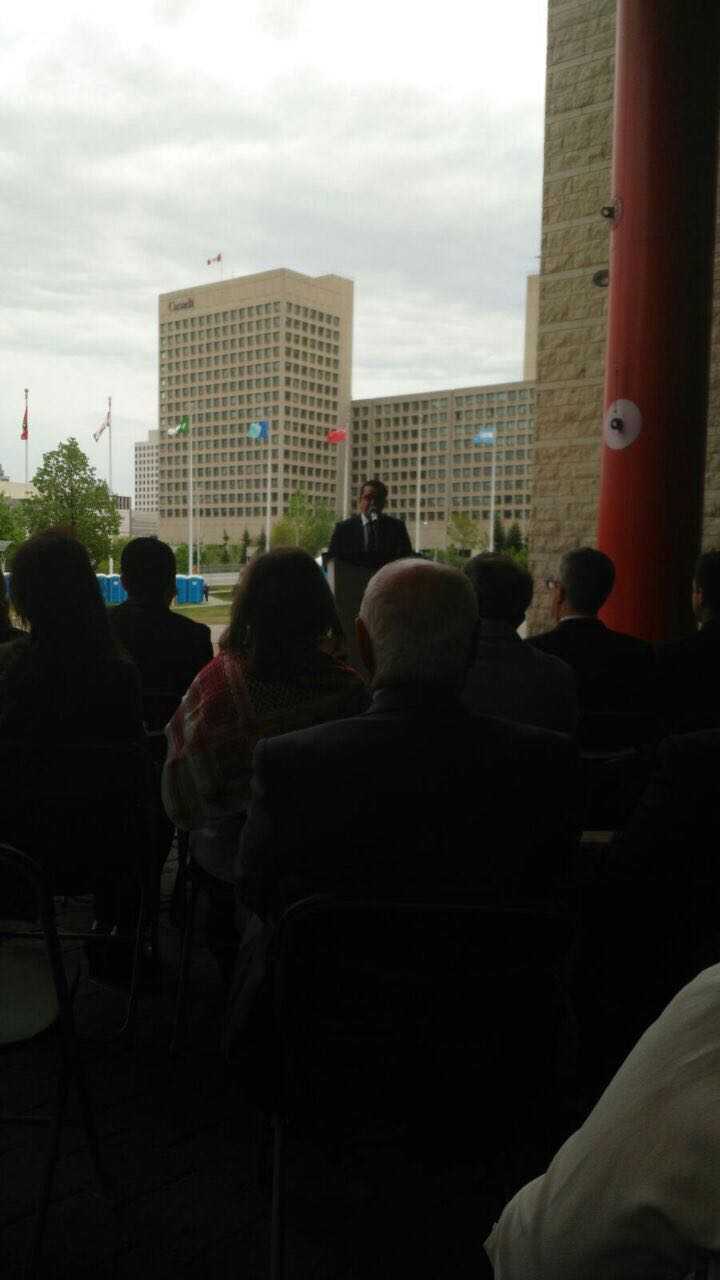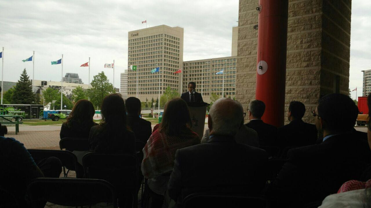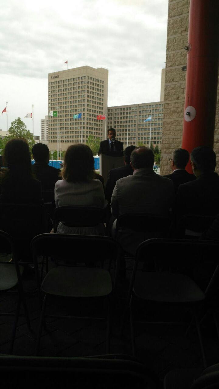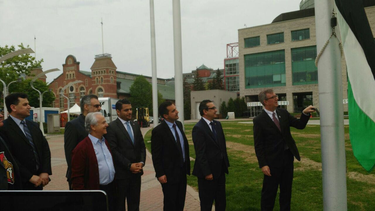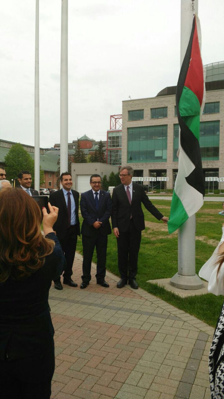 عمون - احتفالا بمناسبة عيد الاستقلال الحادي والسبعين القائم بالأعمال بالإنابة بسفارة المملكة الأردنية الهاشمية في كندا الوزير المفوض د. اسماعيل مدالله المعايطة بالمشاركة الى جانب رئيس بلدية اوتاوا Honorable Mr. Jim Watson في حفل رفع علم المملكة والذي رافقه عزف السلام الملكي وذلك في الميدان الرئيسي لمبنى بلدية العاصمة اوتاوا وبمشاركة من السادة أعضاء المجلس البلدي إضافة الى جمع من المواطنين الأردنيين والكنديين وأفراد الجاليات الأجنبية وأعضاء السفارة. |