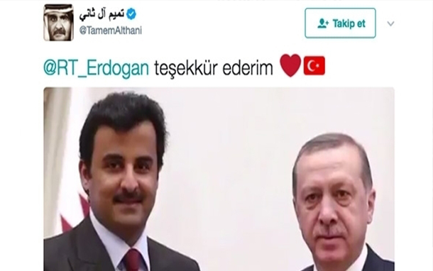 أمير قطر يغرد على تويتر بقلب أحمر: شكرًا أردوغان!11-06-2017 08:58 AM