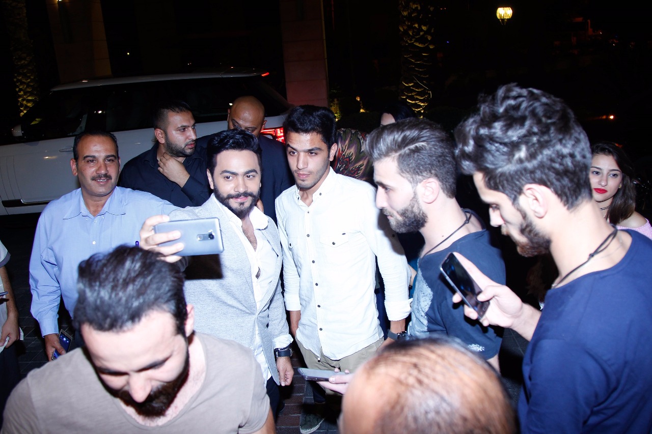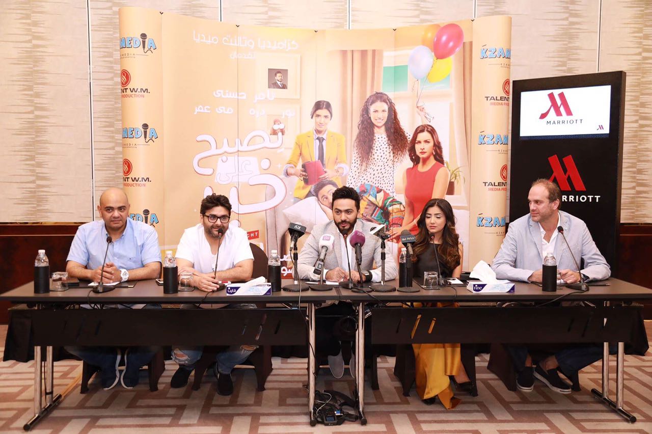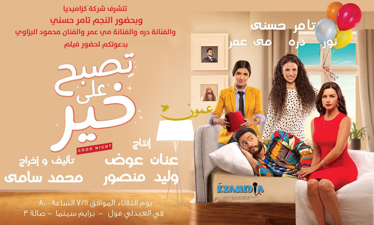 عمون - أقام المنتج الأردني عنان عوض منتج فيلم "تصبح على خير" لنجم الجيل تامر حسني عرضاً خاصاً استضاف من خلاله عدداً من ابطال الفيلم وفي مقدمتهم النجم تامر حسني والفنانة مي عمر والفنان محمود البزاوي والمنتج وليد منصور الشريك في انتاج العمل.