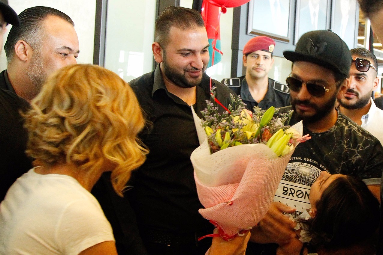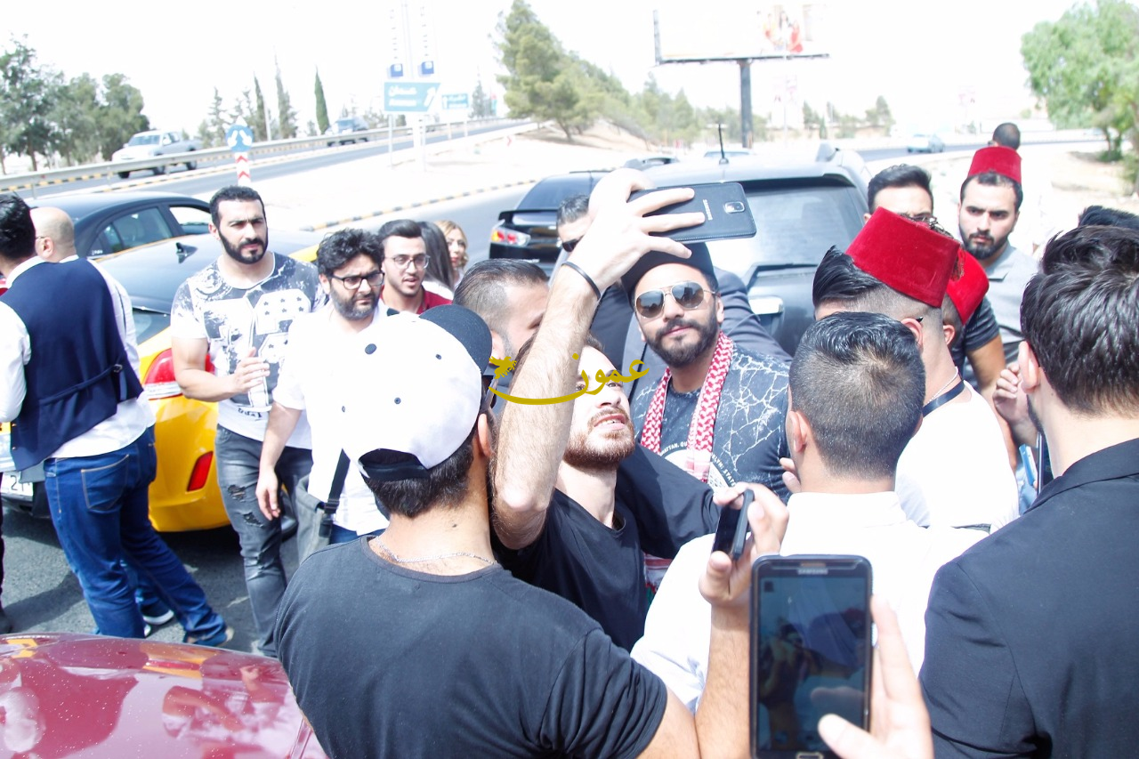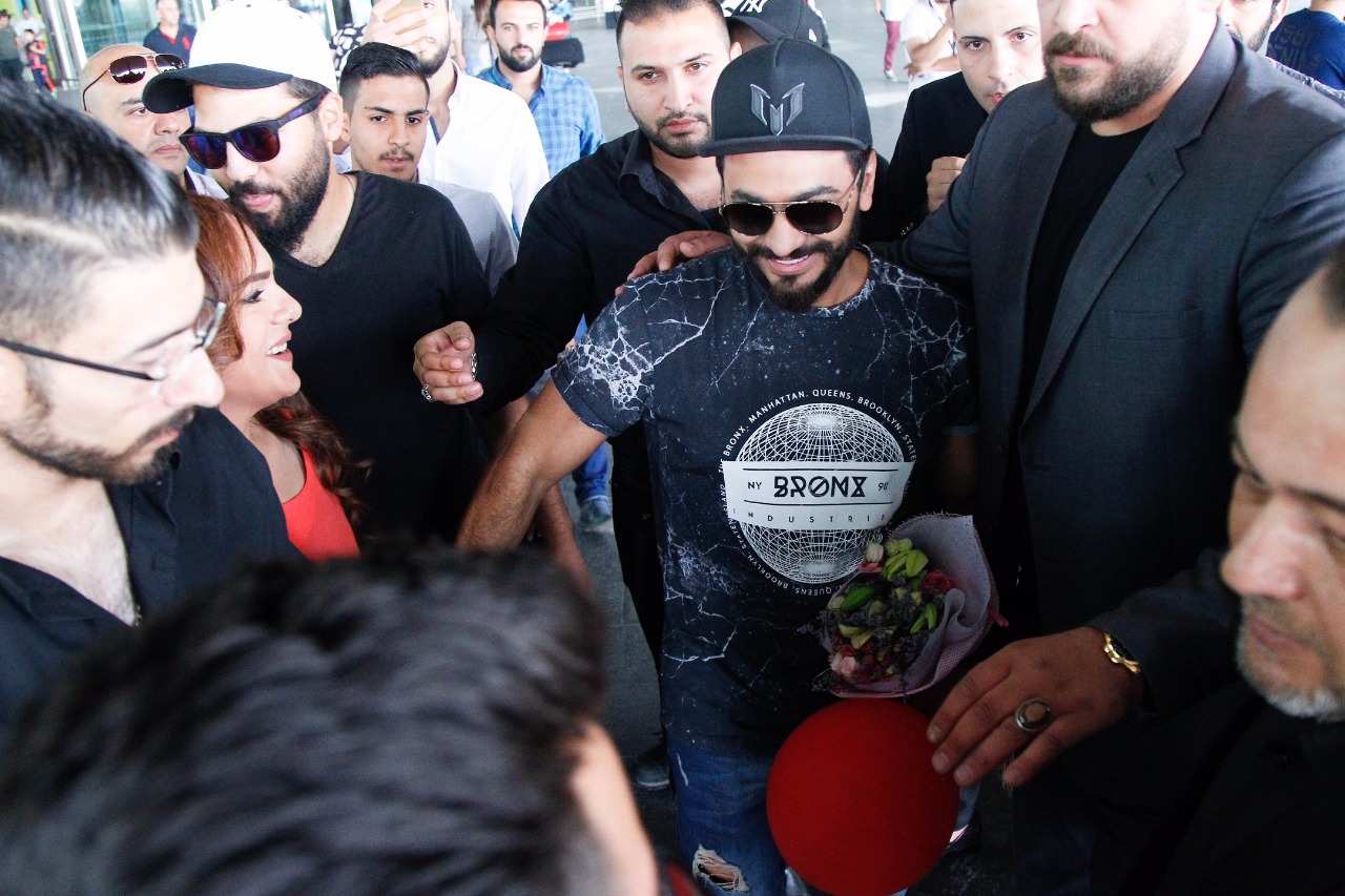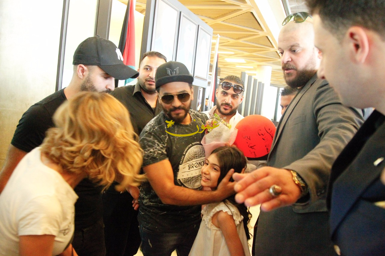 ومنذ البداية كان الجمهور على موعد مع لقاء فنانيهم في مطار الملكة علياء الدولي الذي شهد حضور عدد كبير من المعجبين لاستقبال نجوم الفيلم وزين طريق المطار بلوحات ترحيبية خاصة بتامر حسني و مي عمر و بقية النجوم .
