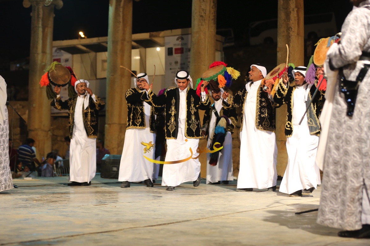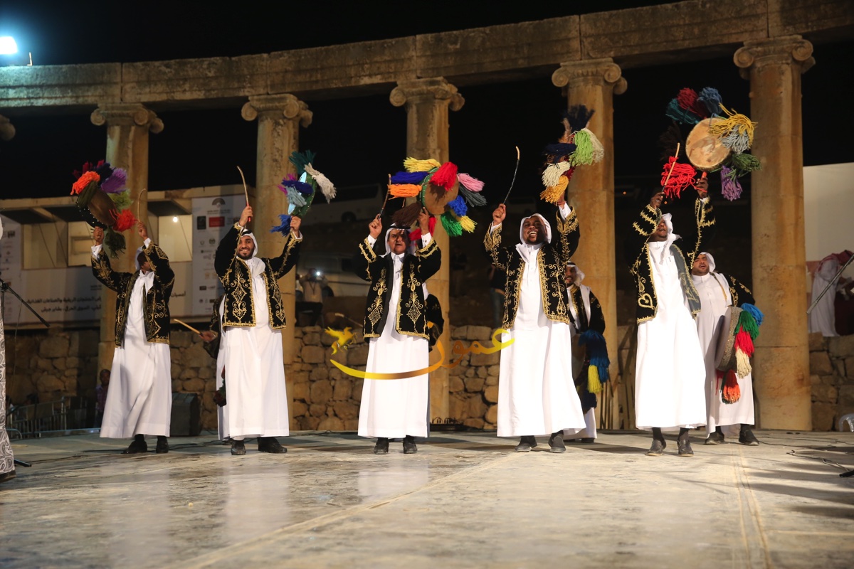 "الدرعية للعرضة" تعيد الالق لساحة الاعمدة بجرش بالموروث السعودي
