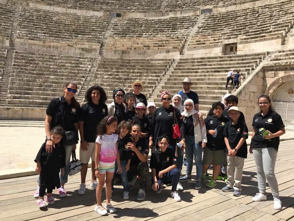 ثم استقل الاطفال ومشرفو المبادرة الباص المكشوف متجهين الى جبل الجوفة على أحد التلال المقابلة لقلعة عمان.لاستكشاف جمال المدرج الروماني تلك التحفة المعمارية الذي بُني إكراماً للامبراطور مادريانوس الذي زار عمان سنة 130م.