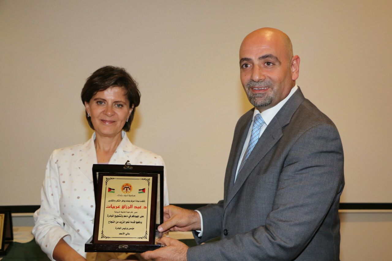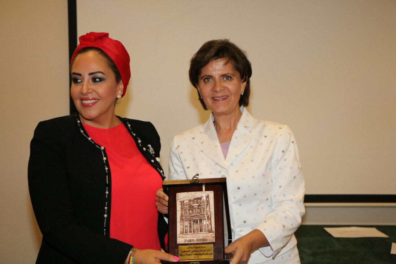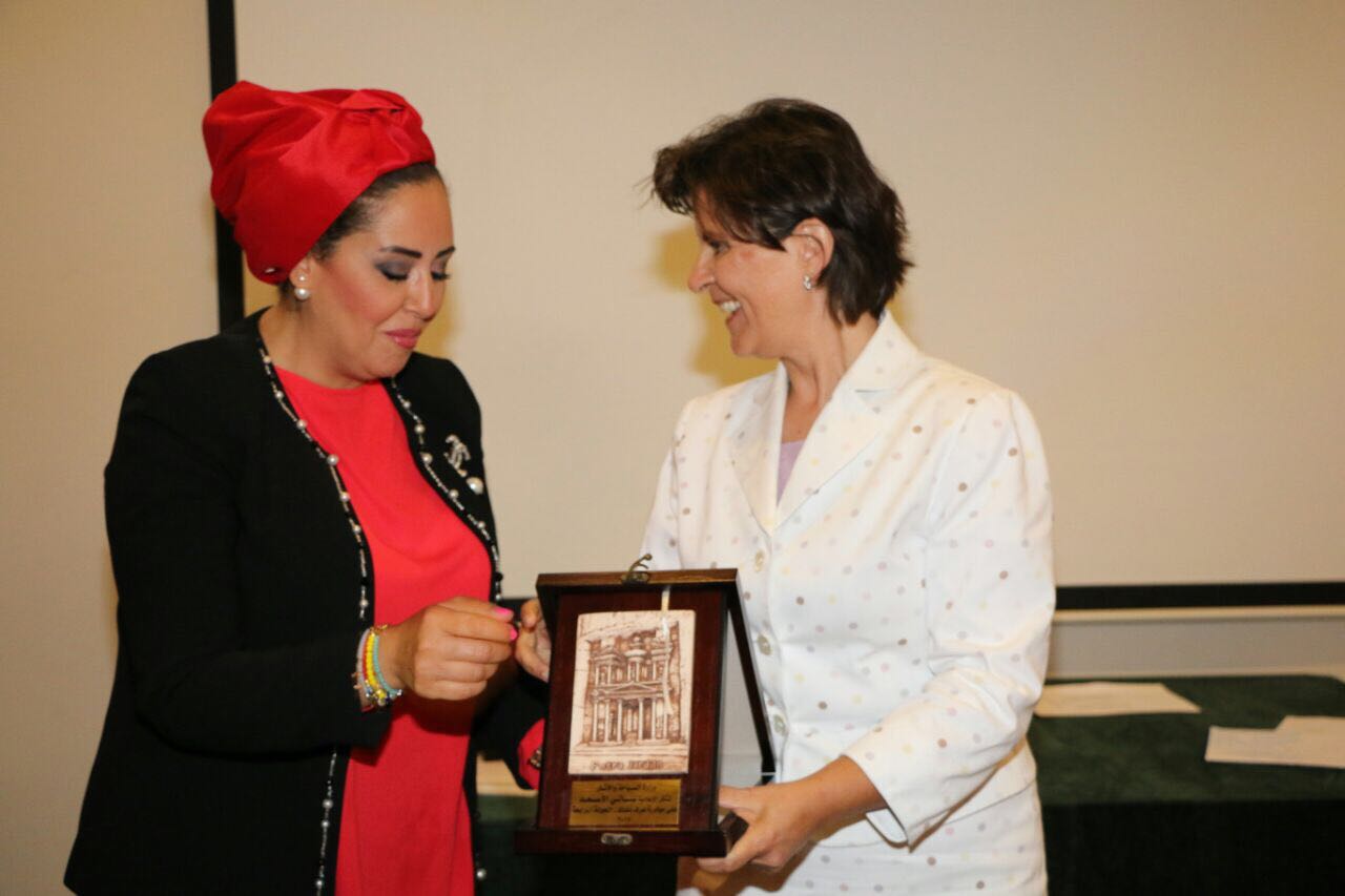 كما قامت الاعلامية الاسعد بتقديم دروع التقدير لكل من معالي الوزيرة لينا عناب وزيرة السياحة والاثار ود. عبدالرزاق عربيات مدير هيئة تنشيط السياحة والمقدم اياد الربيع ممثلا للشرطة السياحية والسيد أحمد الهناندة الرئيس التنفيذي شركة زين استلمه نيابة عنه السيد طارق البيطار مسؤول العلاقات العامة وخدمة المجتمع والسيد اكثم النوافلة المستشار السياحي للمبادرة.