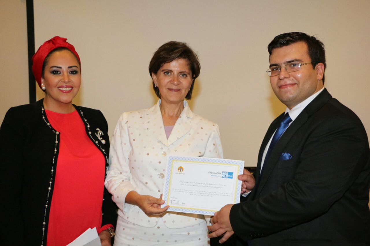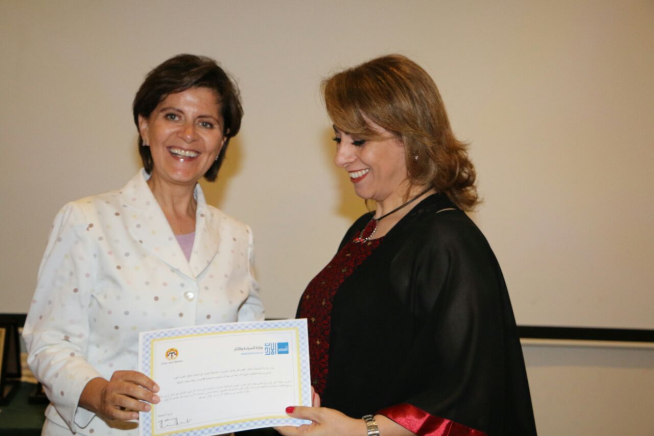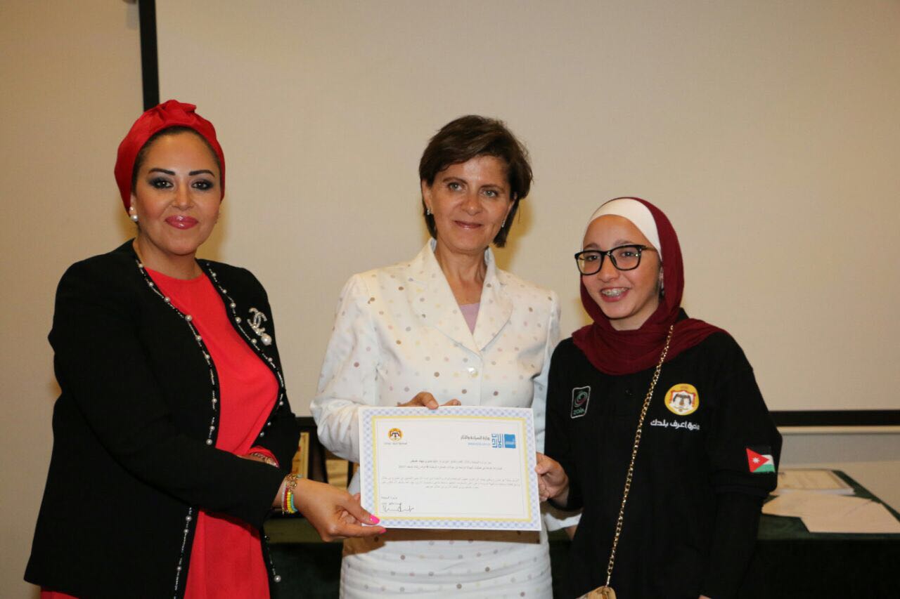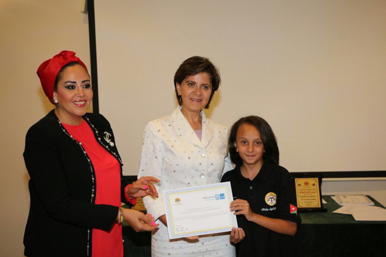 توزيع شهادات التقدير والمشاركة على الطلاب والطالبات المشاركين كان جزءا متميزا في الاحتفالية اذ اقترحت الاعلامية سالي الاسعد ان يكونوا الفقرة الاولى بالتكريم لكونهم ابطال الحفل والركن الاساسي لنجاح المبادرة وهو الامر الذي لاقى ترحاب معالي الوزيرة والضيوف المشاركين لتتوزع الشهادات على المشاركين وسط الفرحة والسعادة التي بدت واضحة على محيا الاطفال وذويهم.