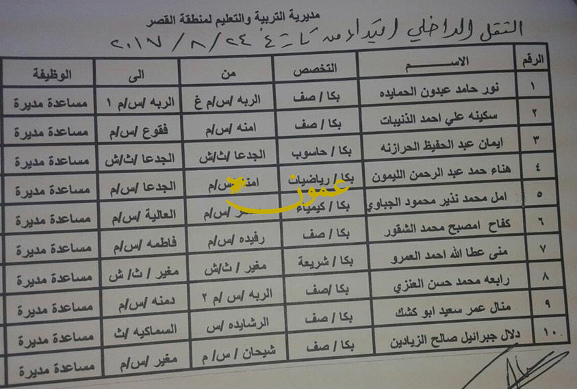 تشكيلات في تربية لواء القصر بالكرك18-08-2017 06:06 PM