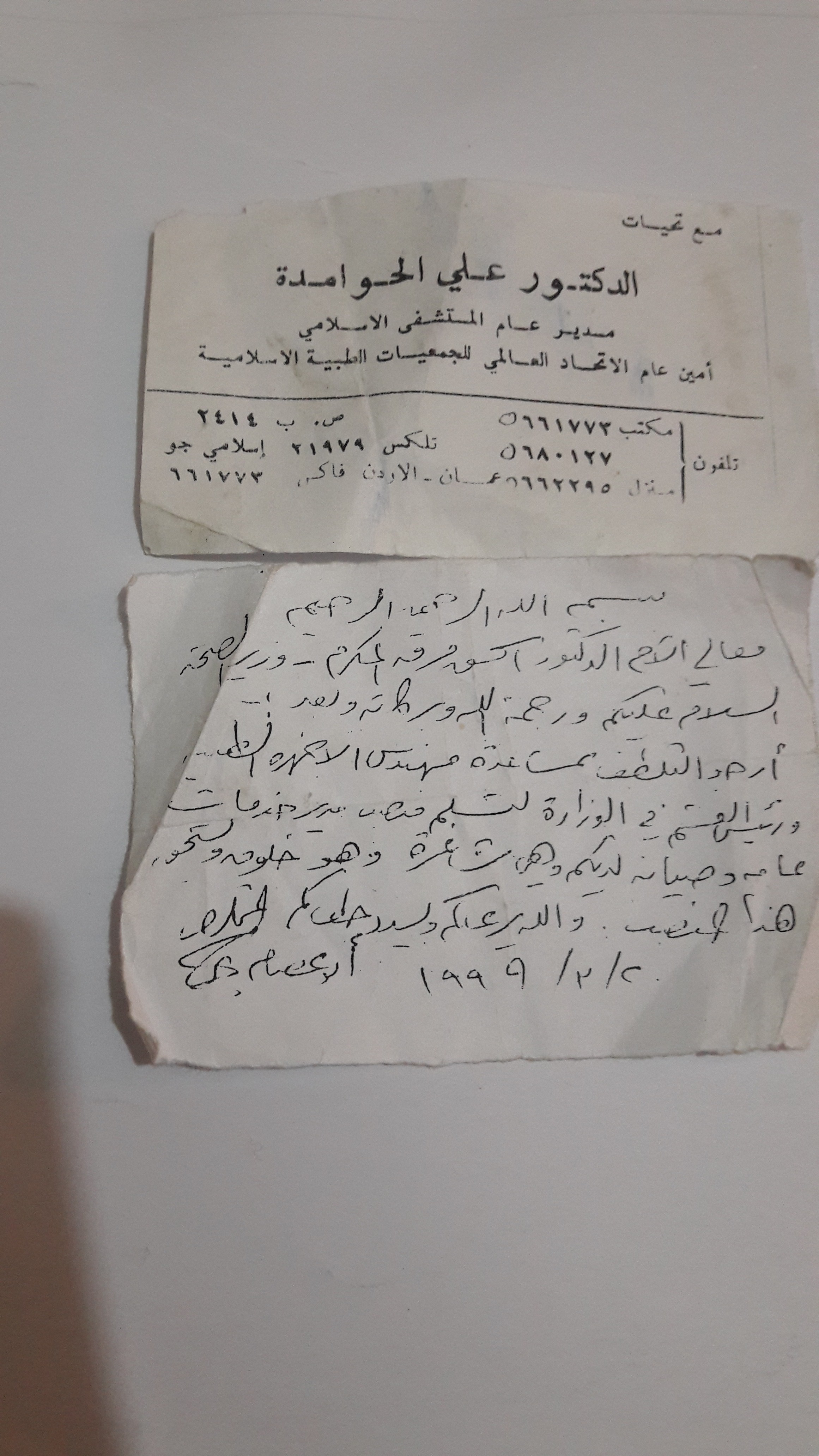 سار الزمن وبعد عقدين من تلك الحادثة تشرفت بالعمل تحت قيادته وادارته في المستشفى الإسلامي رئيسا لقسم اللوازم والمشتريات الذي تم استحداثه حديثا واسندت لي رئاسته بالاضافة الى رئاسة كافة لجان المشتريات في المستشفى