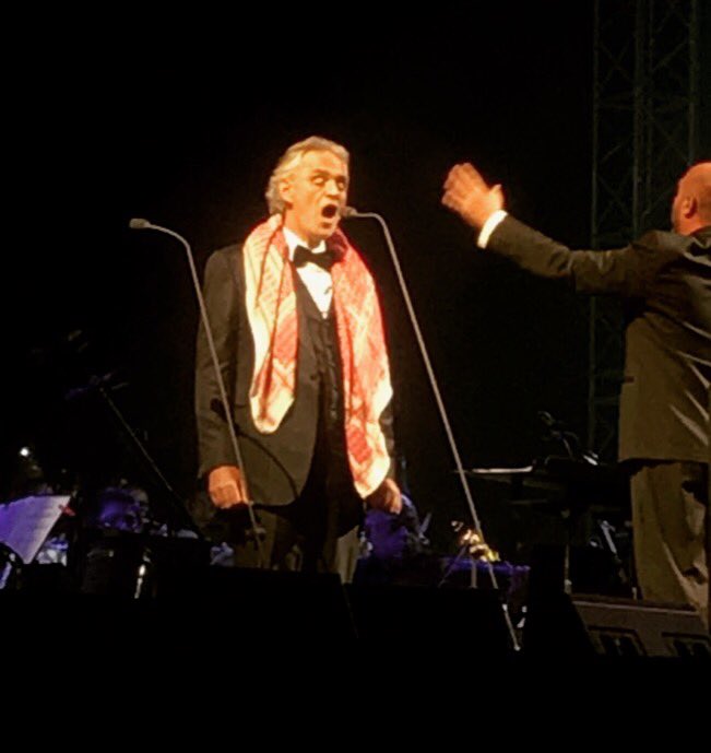 واستمع الجمهور الذي غصت به ساحة الاعمدة، الى اهم المقطوعات التي غناها الفنان بوتشيلي خلال مسيرته الفنية، التي سجل خلالها 15 البوما منفردا، من الموسيقى الكلاسيكية والمعاصرة، وثلاثة البومات لاغانيه المفضلة، و9 البومات اوبرا كاملة، وبيع منها اكثر من 80 مليون نسخة في جميع انحاء العالم.