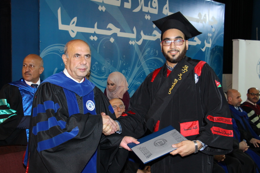 وبارك الأستاذ الدكتور معتز الشيخ سالم رئيس الجامعة للخريجين وأولياء أمورهم وأسرة الجامعة تخرجهم مؤكداً اعتزاز جامعة فيلادلفيا بهم وقد أعدتهم أعداداً تليق بهم ليأخذوا مكانتهم ويساهموا في العمل المنتج من أجل بناء الوطن ورفعته والإعلاء من شأنه تحت ظل صاحب الجلالة الملك عبدالله الثاني بن الحسين أعز الله ملكه. وهنأ الدكتور مصطفى الجلابنة عميد شؤون الطلبة الكوكبةً الجديدة من فرسان فيلادلفيا الذين نهلوا منها العلمَ والمعرفةَ، والذين صُقلتْ شخصياتُهُم ليكونوا شباباً قادرين على تحمِّلِ المسؤوليةِ رافعا لمقام سيدنا صاحب الجلالة وولي عهده الأمين أسمى آيات الولاء والانتماء.