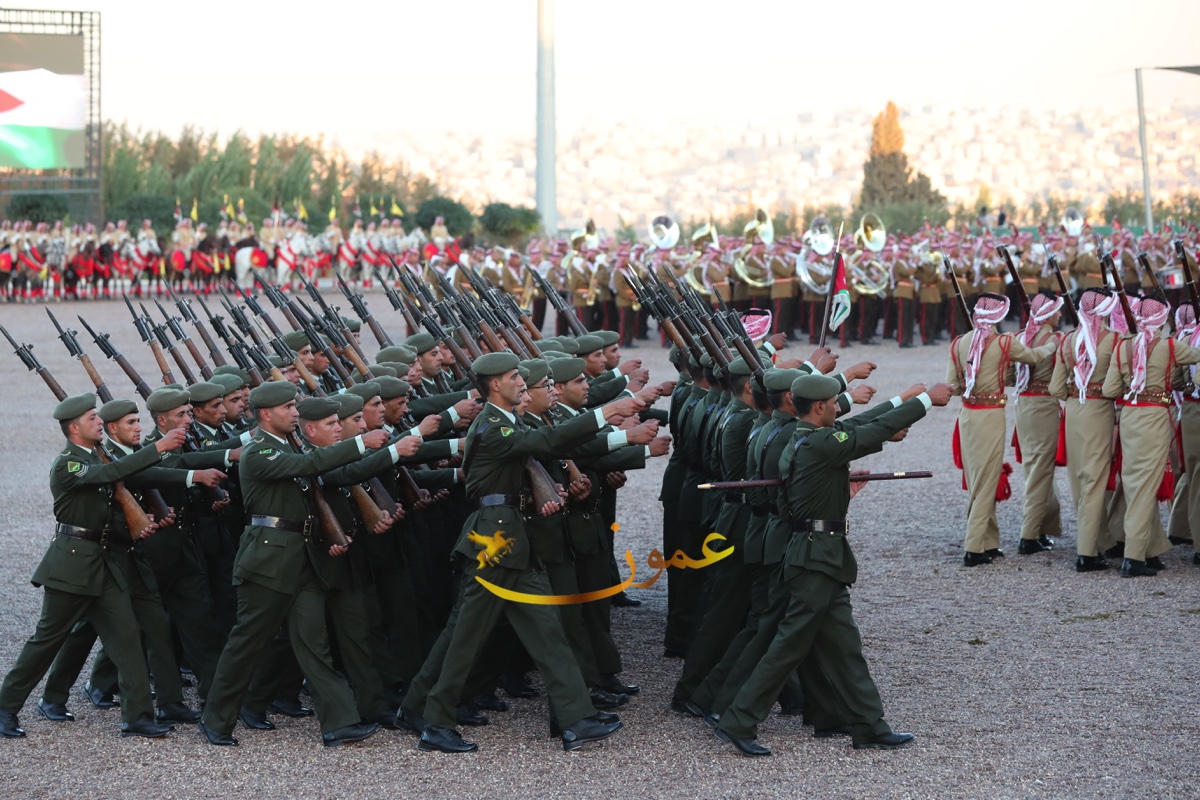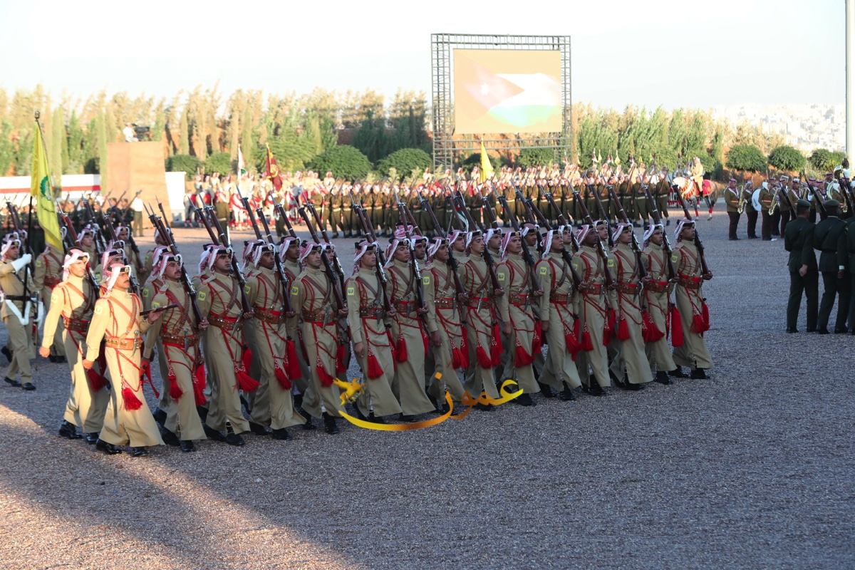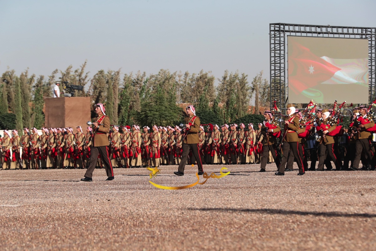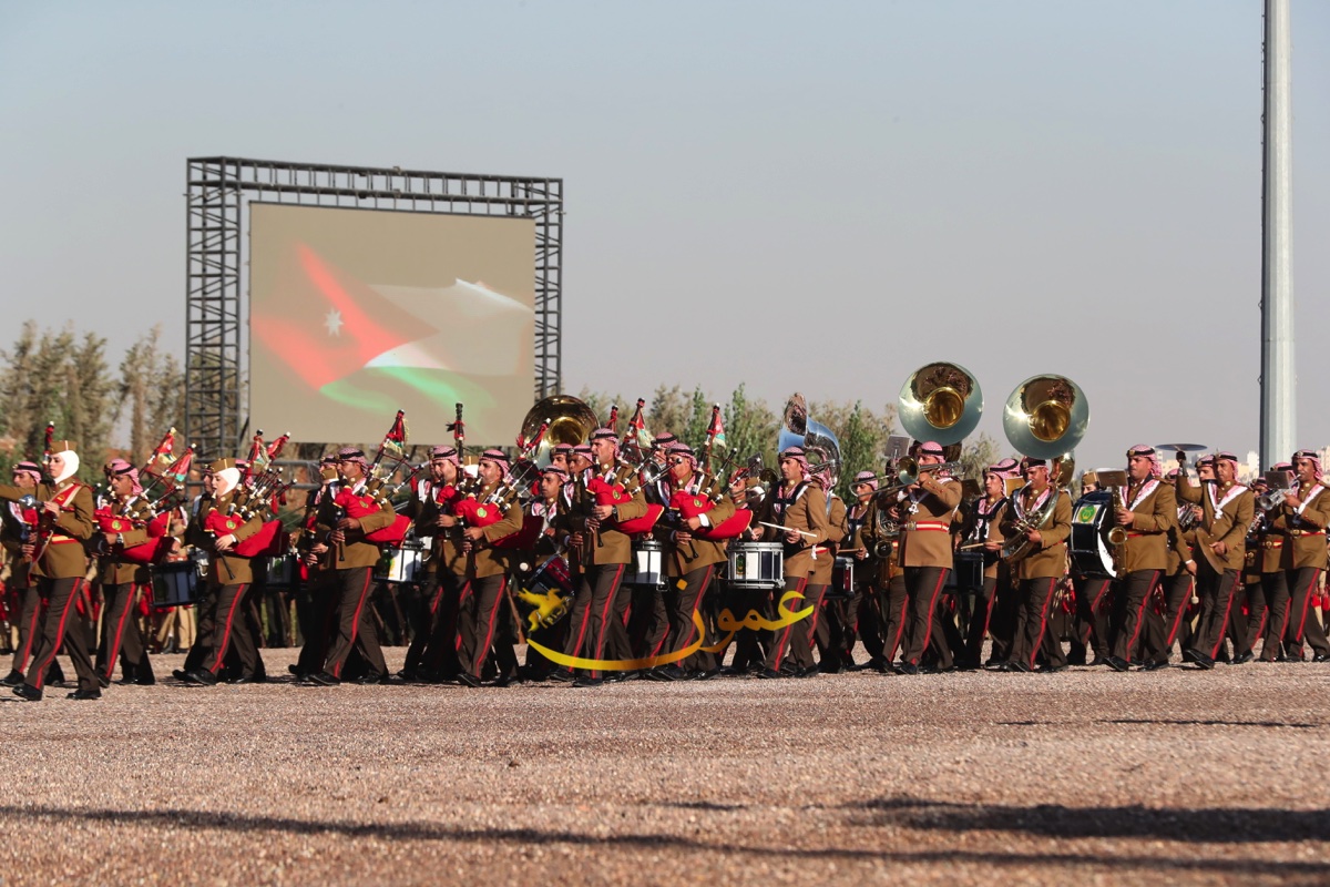 وقدمت موسيقات القوات المسلحة الأردنية – الجيش العربي مجموعة من المقطوعات الموسيقية، واستعرضت الوحدات المشاركة من أمام المنصة، بنظام المسير العادي، على أنغام معزوفات من التراث العسكري والأغاني الوطنية والعالمية.