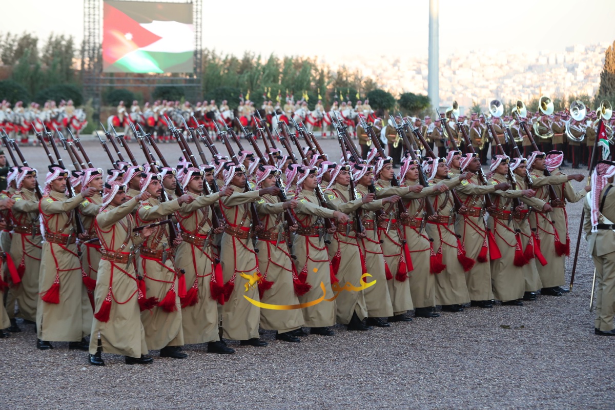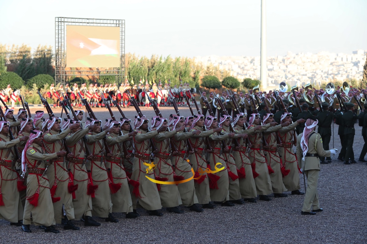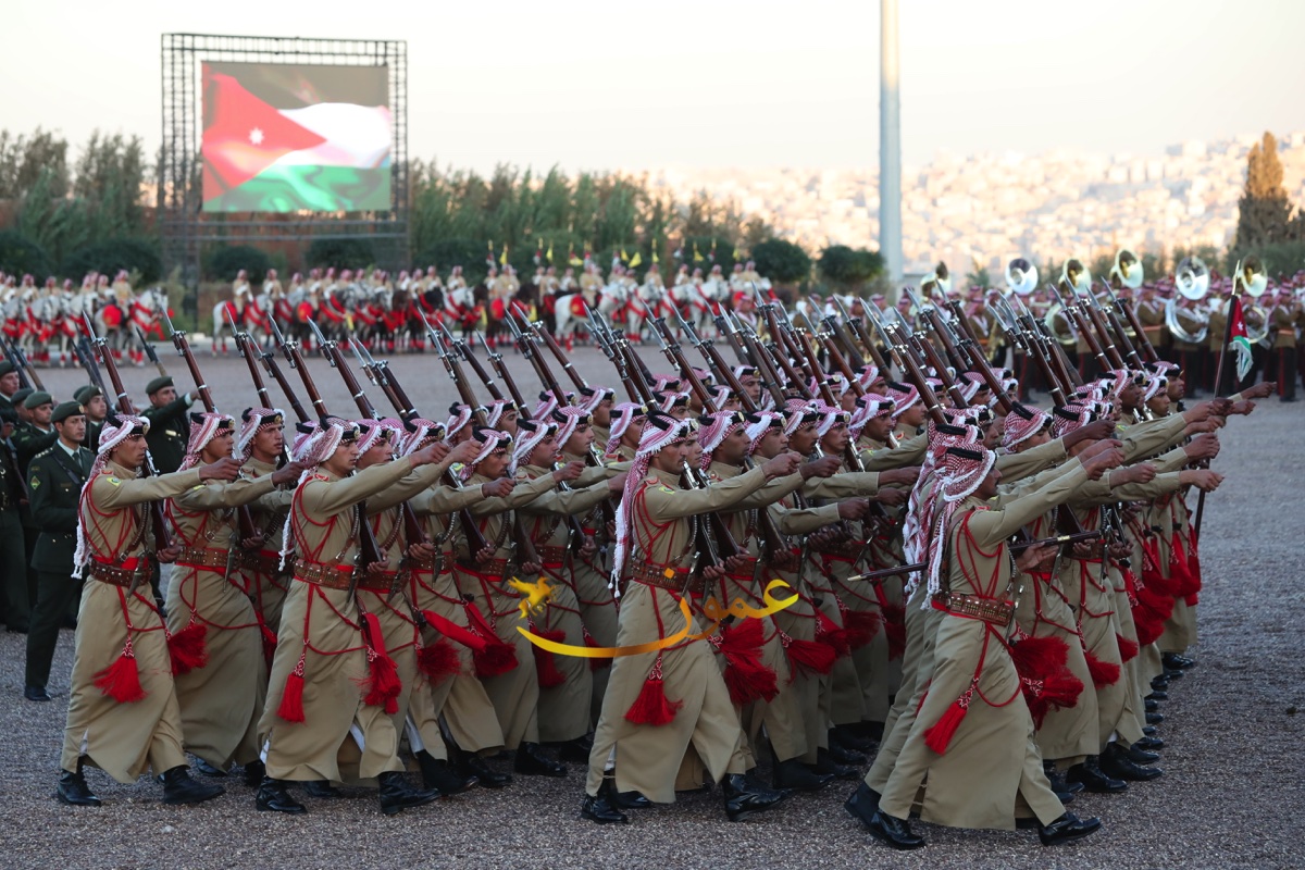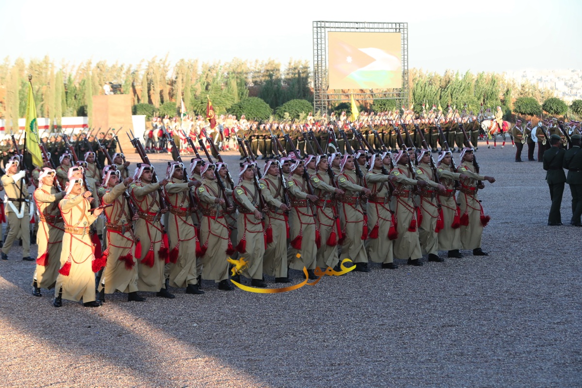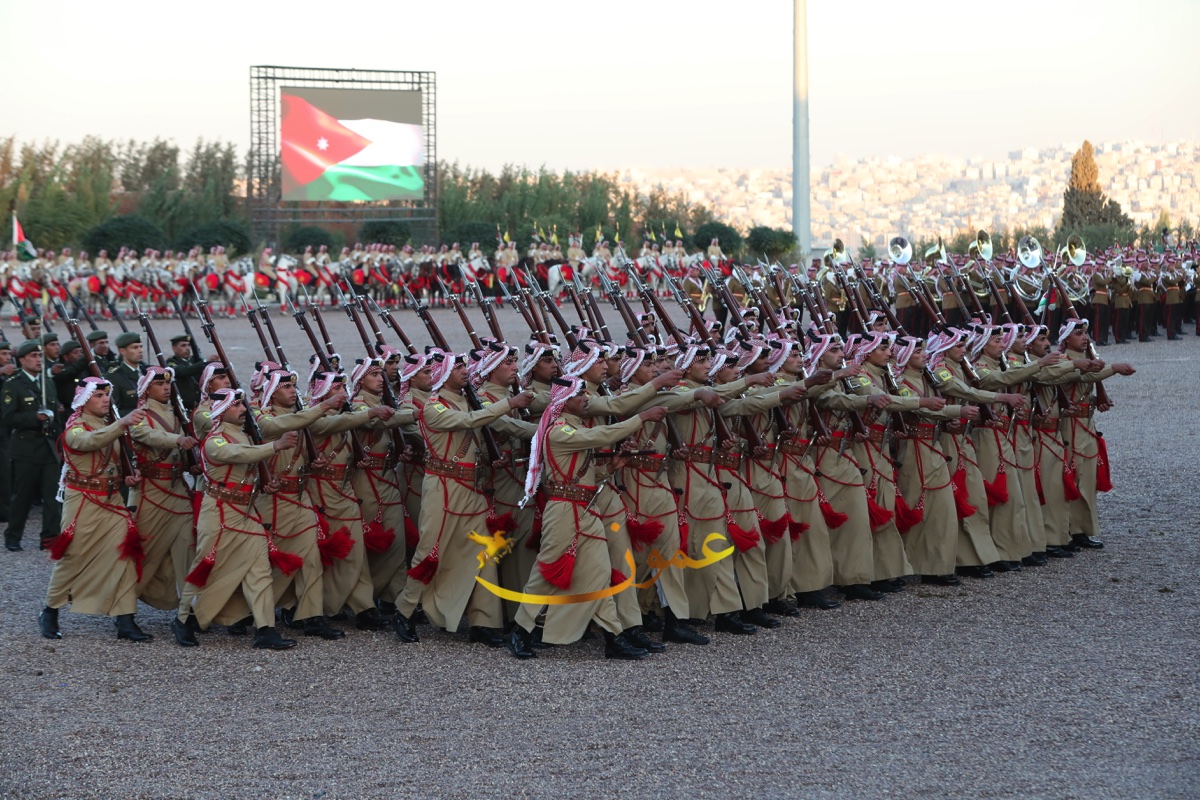 وقدمت موسيقات القوات المسلحة الأردنية – الجيش العربي مجموعة من المقطوعات الموسيقية، واستعرضت الوحدات المشاركة من أمام المنصة، بنظام المسير العادي، على أنغام معزوفات من التراث العسكري والأغاني الوطنية والعالمية.