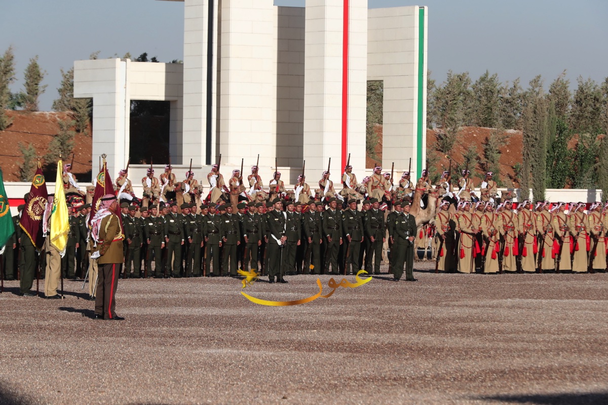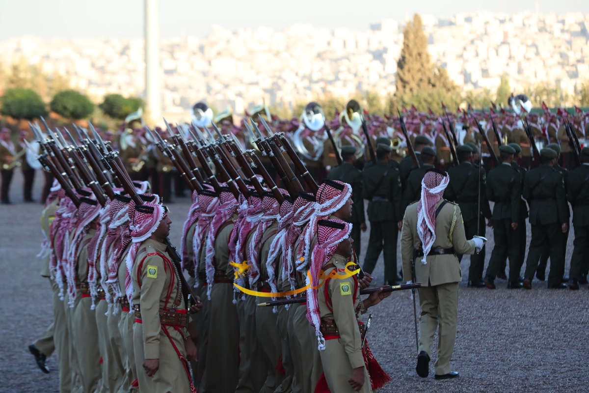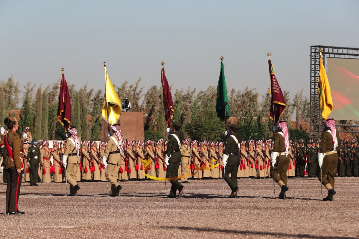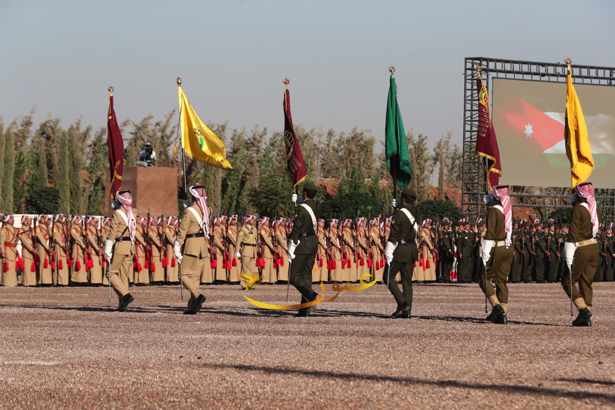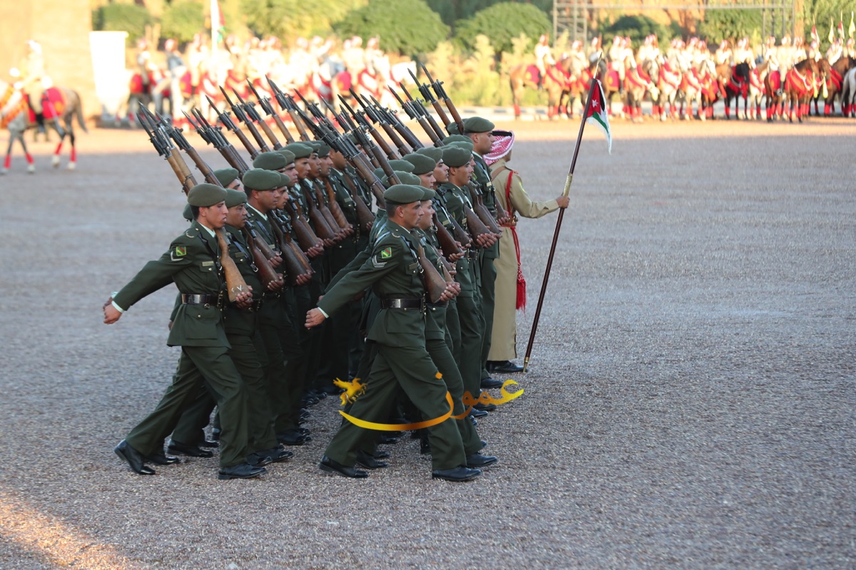 ولدى وصول جلالة القائد الأعلى ميدان الراية مستقلا الموكب الملكي الأحمر وتحيطه كوكبة من الفرسان، أطلقت المدفعية إحدى وعشرين طلقة تحية لجلالته، وكان في استقباله رئيس هيئة الأركان المشتركة الفريق الركن محمود عبدالحليم فريحات.