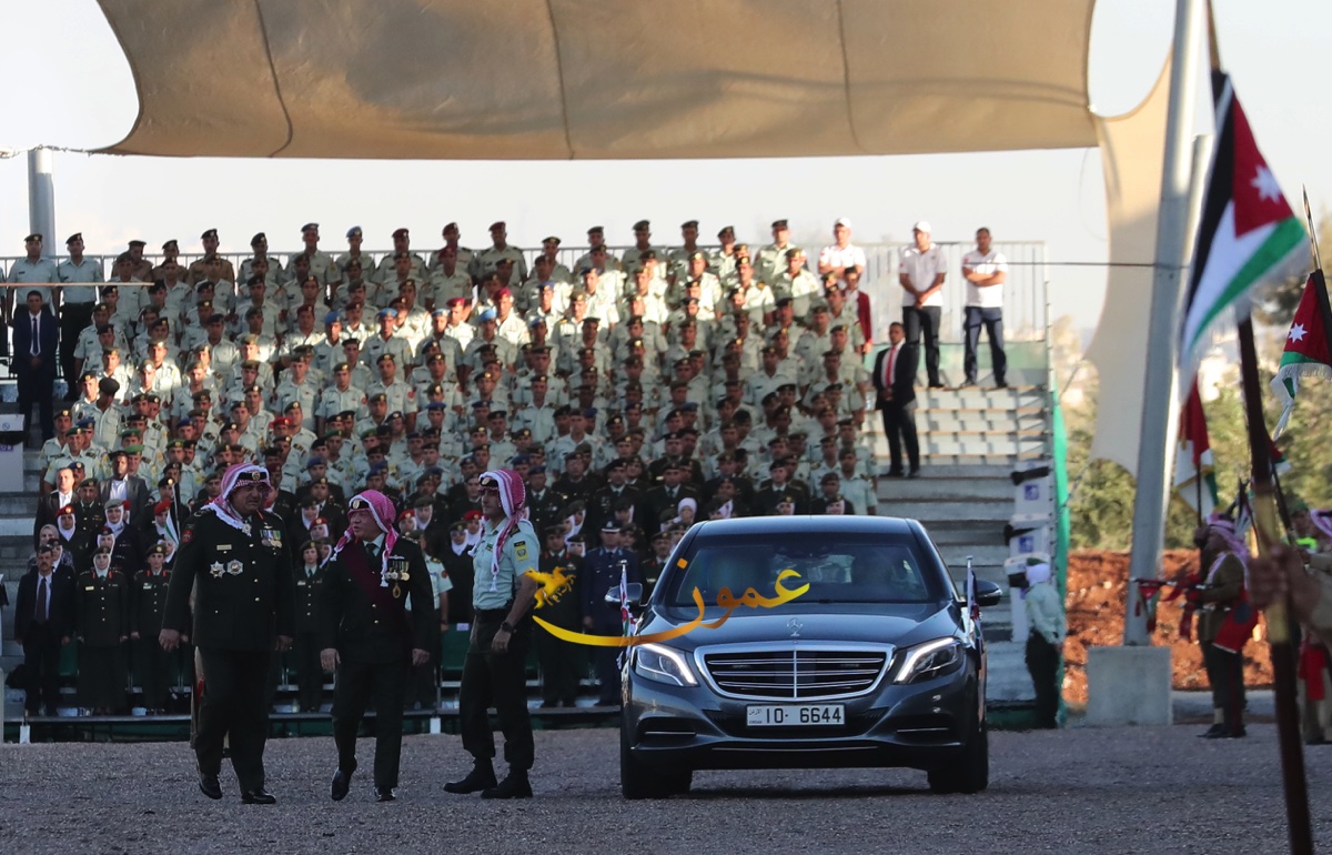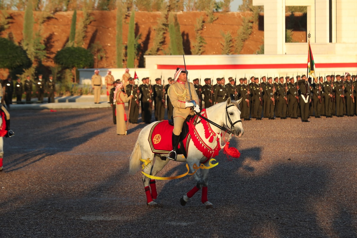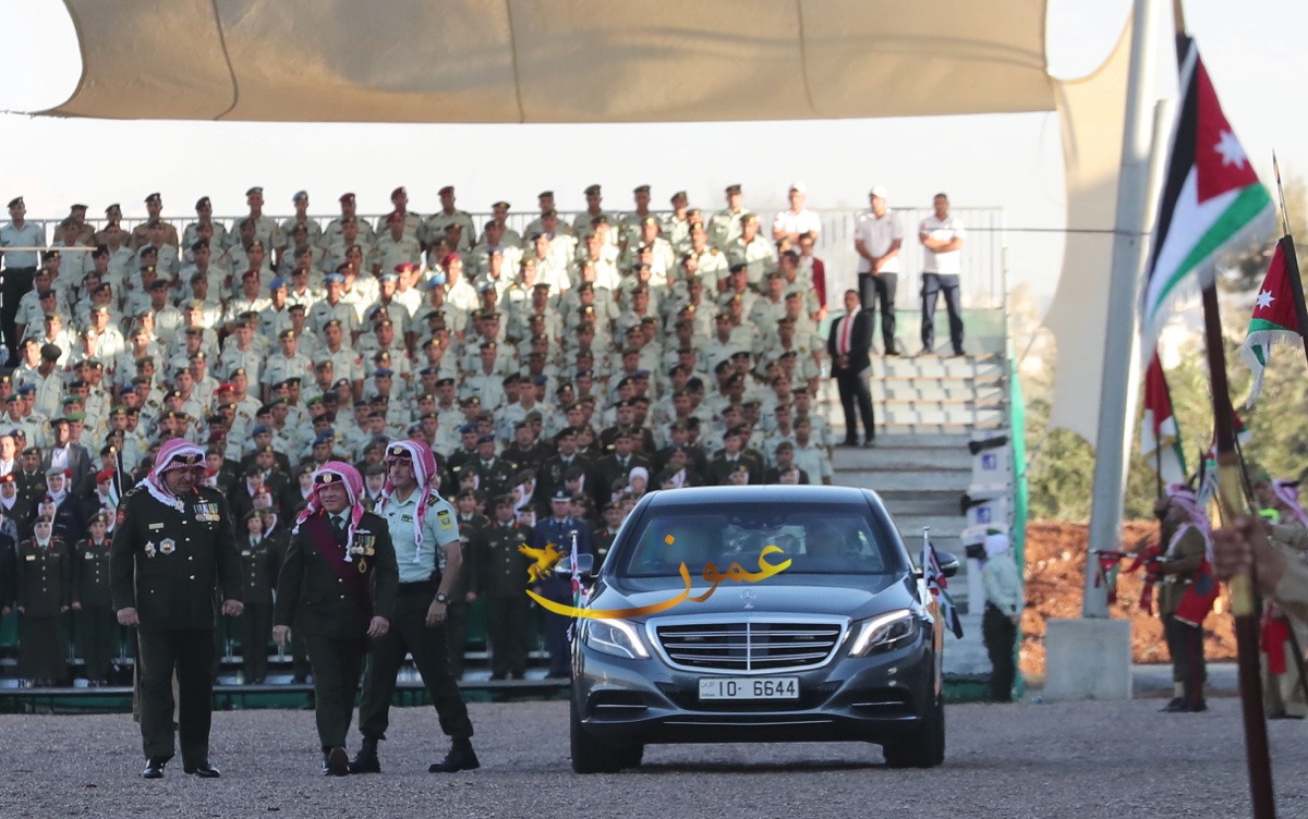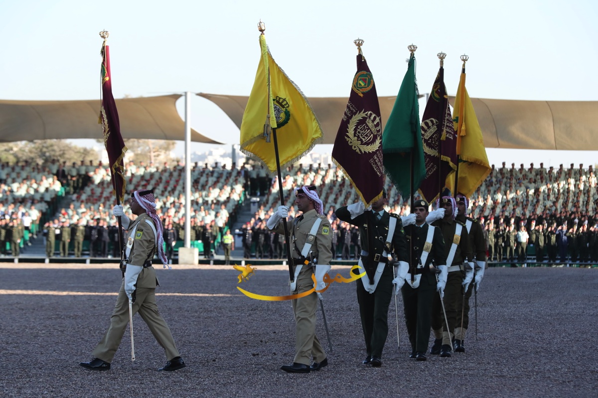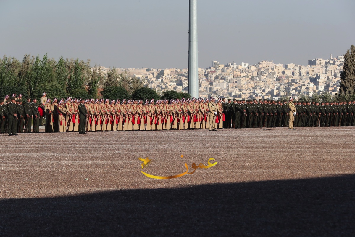 ولدى وصول جلالة القائد الأعلى ميدان الراية مستقلا الموكب الملكي الأحمر وتحيطه كوكبة من الفرسان، أطلقت المدفعية إحدى وعشرين طلقة تحية لجلالته، وكان في استقباله رئيس هيئة الأركان المشتركة الفريق الركن محمود عبدالحليم فريحات.