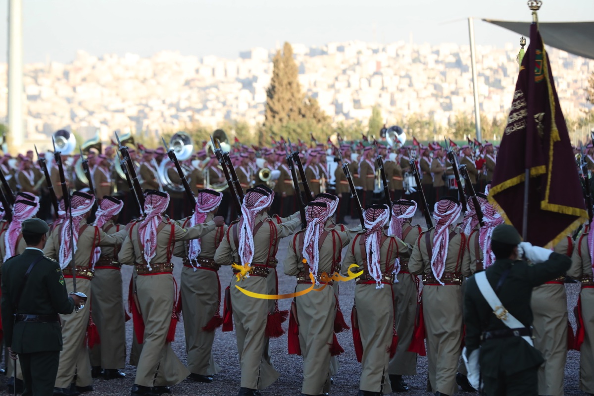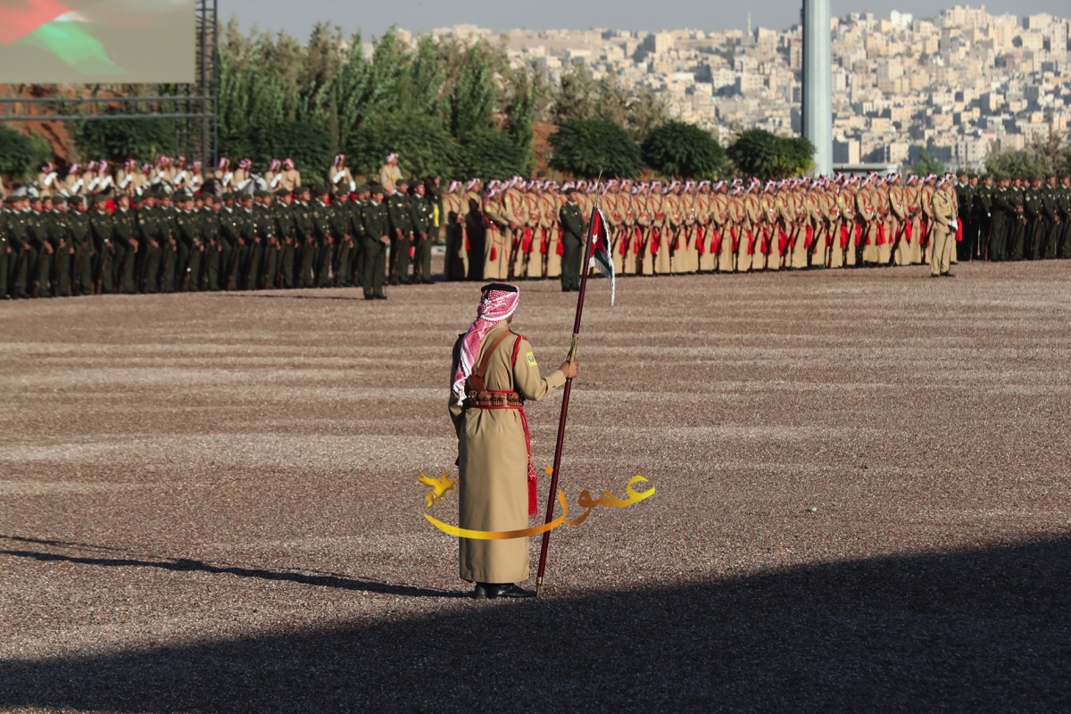 وشكلت مراسم تسليم الراية الفقرة الأكثر جمالية ورمزية في "استعراض العلم"، إذ جسدت مكانة القوات المسلحة الأردنية كحارس لمبادئ الثورة والنهضة العربية الكبرى وقيمها التي قادت مسيرة استقلال وبناء الأردن الحديث.