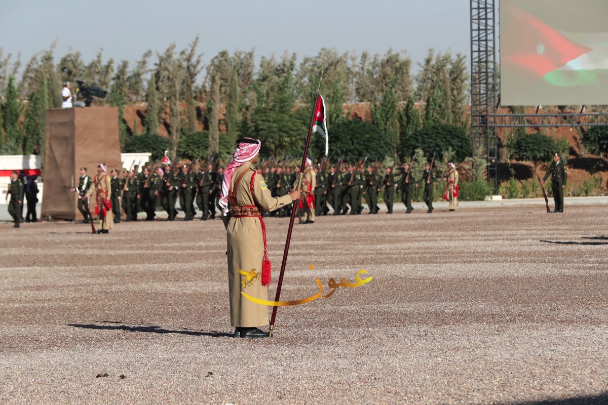 عمون - سلم جلالة الملك عبدالله الثاني، القائد الأعلى للقوات المسلحة، اليوم الخميس، راية الثورة العربية الكبرى إلى كتيبة جعفر بن أبي طالب الآلية 39 (الطيار)، خلال "استعراض العلم" السنوي الذي أقيم في ميدان الراية بالديوان الملكي الهاشمي.
