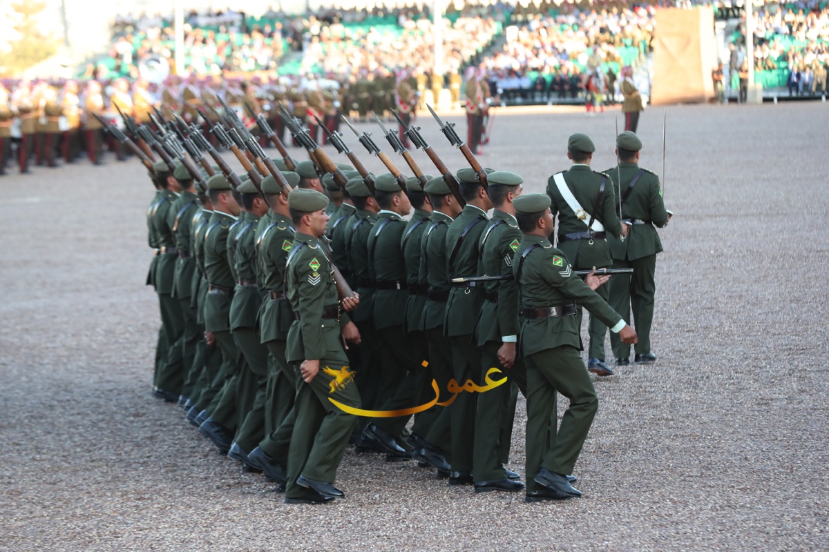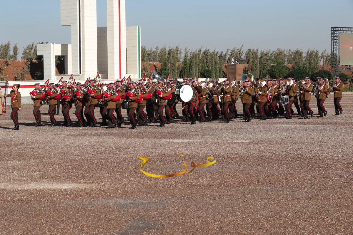 وعزفت الموسيقات السلام الملكي، إيذانا بانطلاق المراسم حيث استعرض جلالته طابور الوحدات العسكرية المشاركة في الاستعراض، التي اصطفت بانتظام يتقدمها حملة الأعلام.