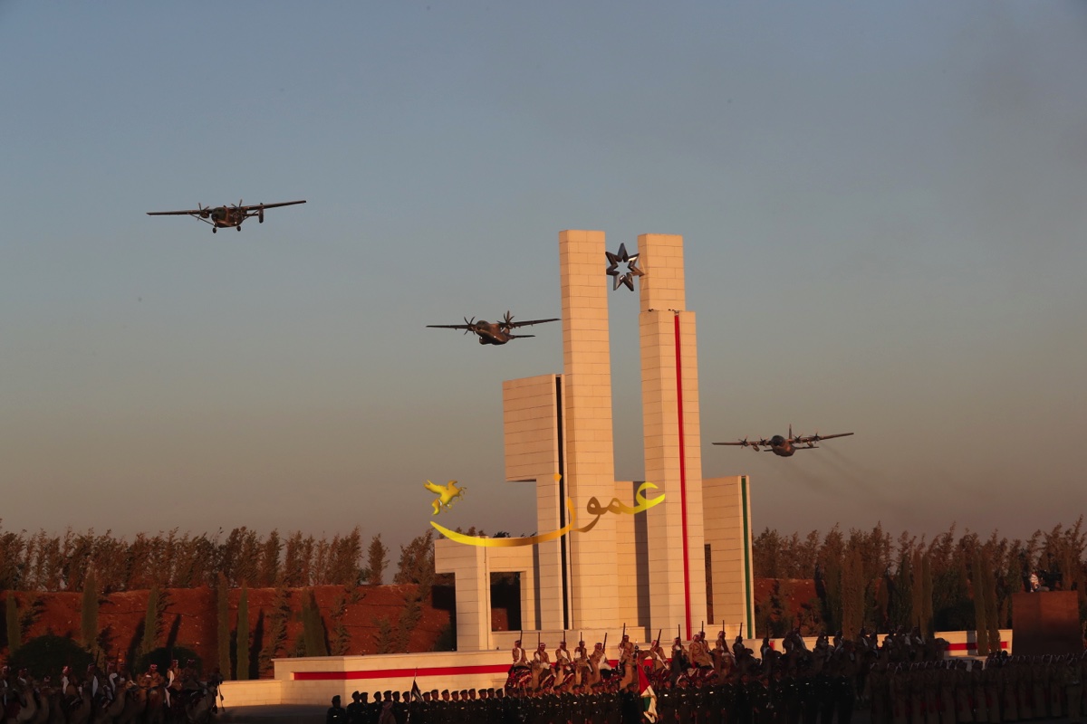 وفي فقرة تستحضر دورهما التاريخي في القوات المسلحة، قدمت الهجانة والخيالة استعراضا مشتركا، فيما حلقت في سماء الميدان طائرات مقاتلة وعمودية من سلاح الجو الملكي.