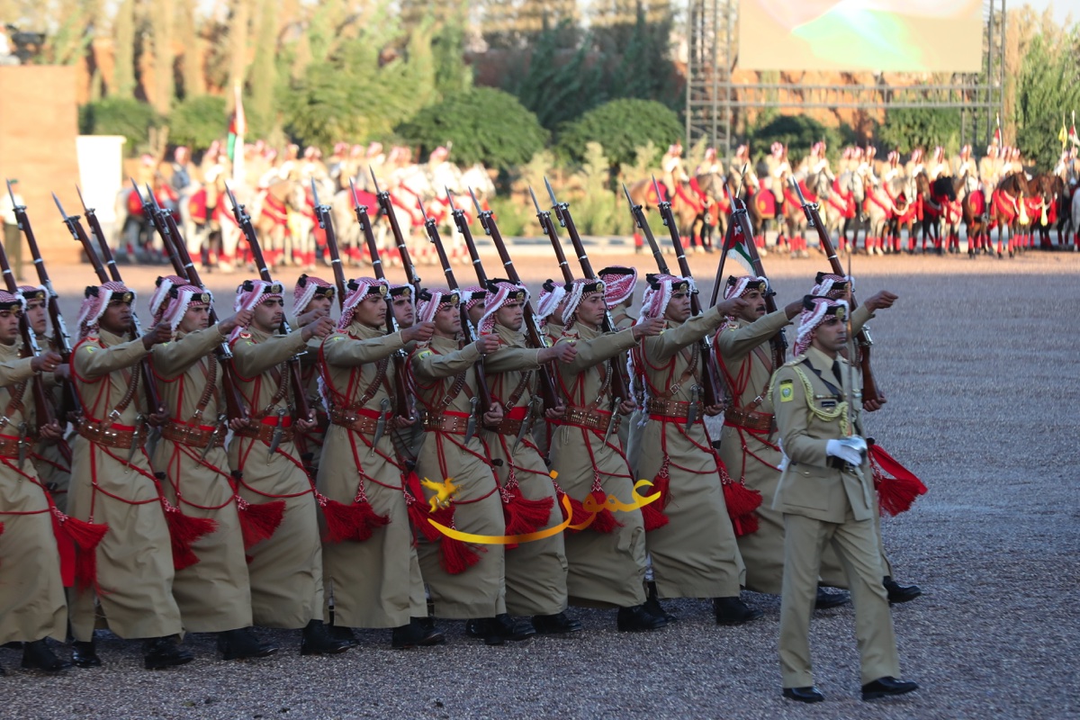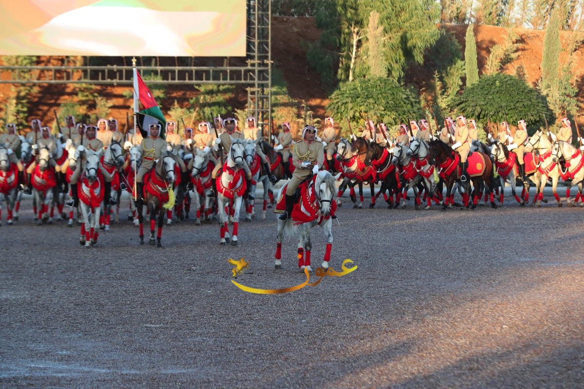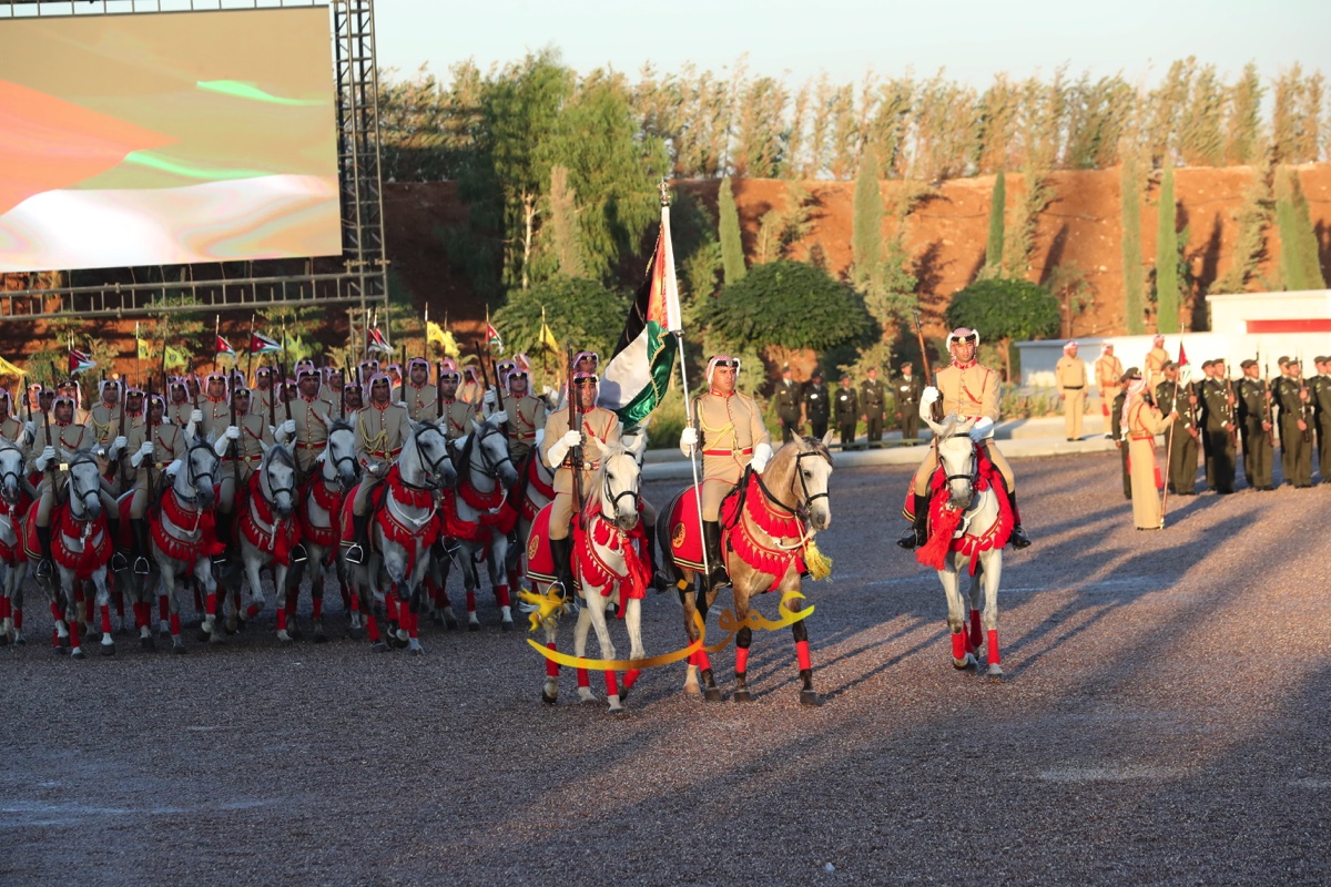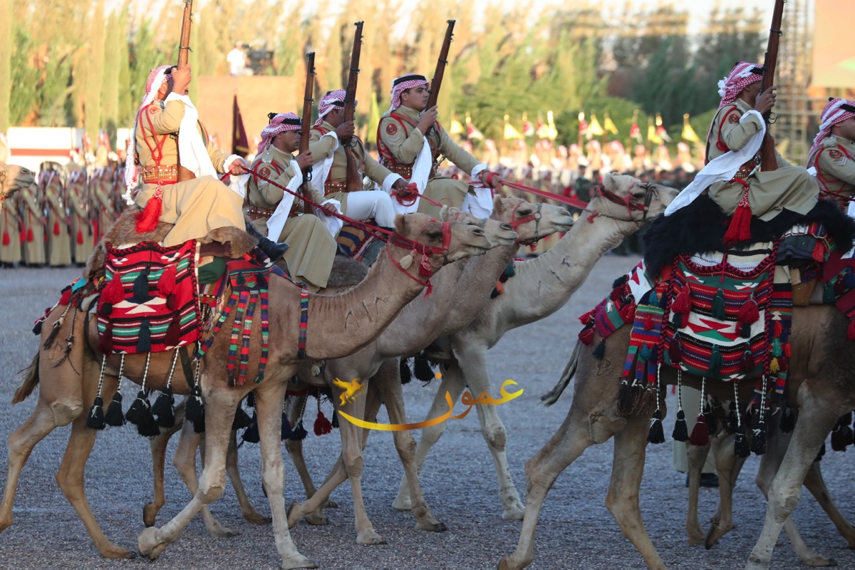 ورسم المشاركون، من خلال طوابير ومارشات صاحبتها مقطوعات من التراث الموسيقي الوطني والعالمي، لوحات فنية عكست مستوى عال من الانضباطية والاحتراف والأداء المتقن، وتخللها عروض للخيالة والهجانة، وطائرات سلاح الجو الملكي.