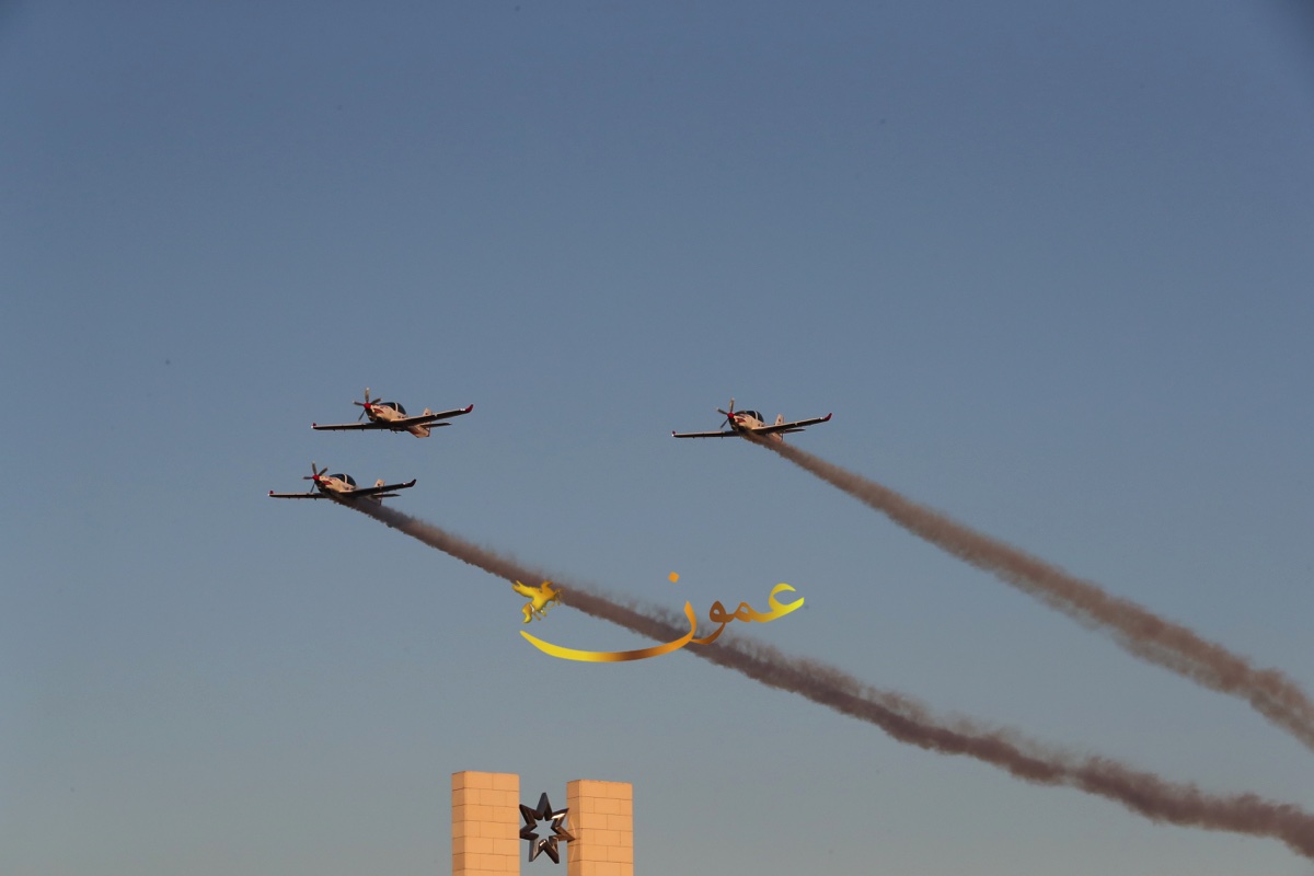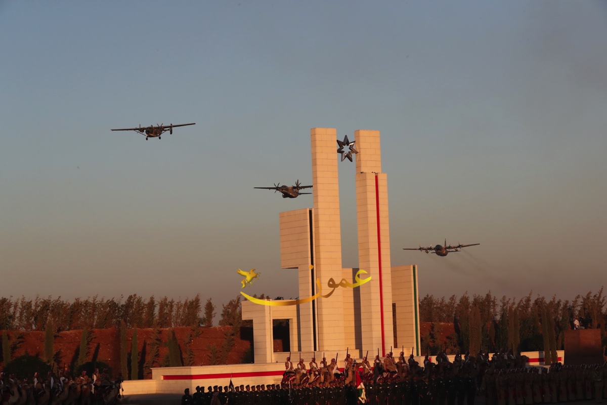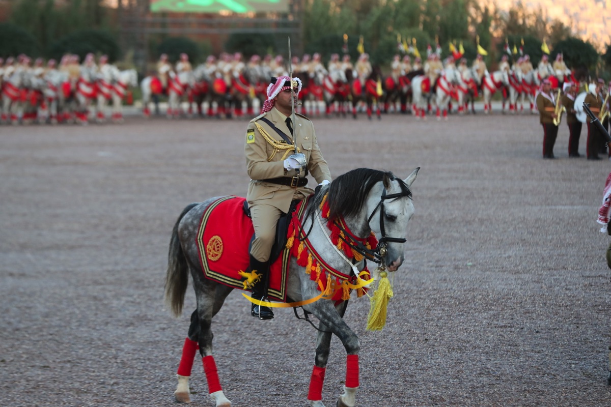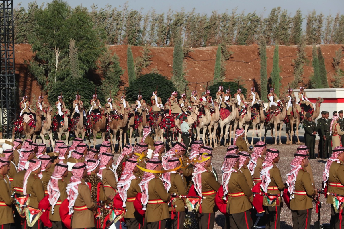 ورسم المشاركون، من خلال طوابير ومارشات صاحبتها مقطوعات من التراث الموسيقي الوطني والعالمي، لوحات فنية عكست مستوى عال من الانضباطية والاحتراف والأداء المتقن، وتخللها عروض للخيالة والهجانة، وطائرات سلاح الجو الملكي.