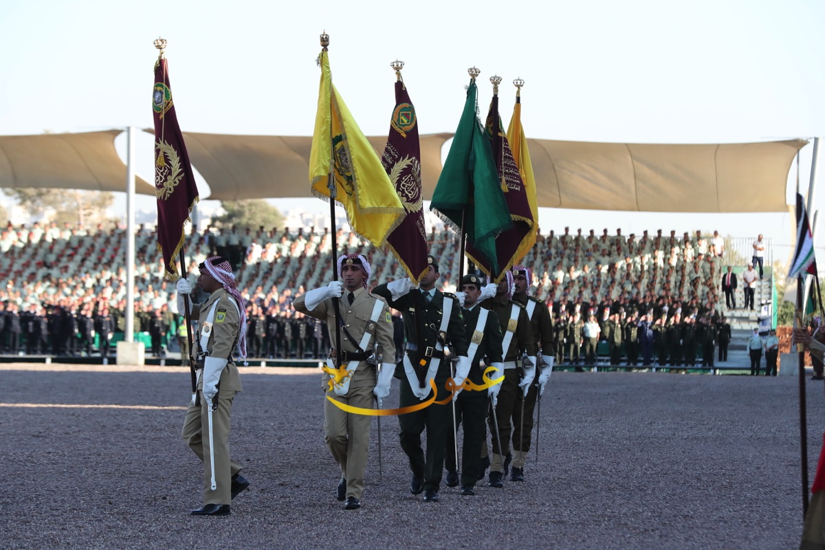 بعد ذلك، جرت مراسم تسليم جلالة القائد الأعلى راية الثورة العربية الكبرى إلى كتيبة جعفر بن أبي طالب الآلية 39 (الطيار).